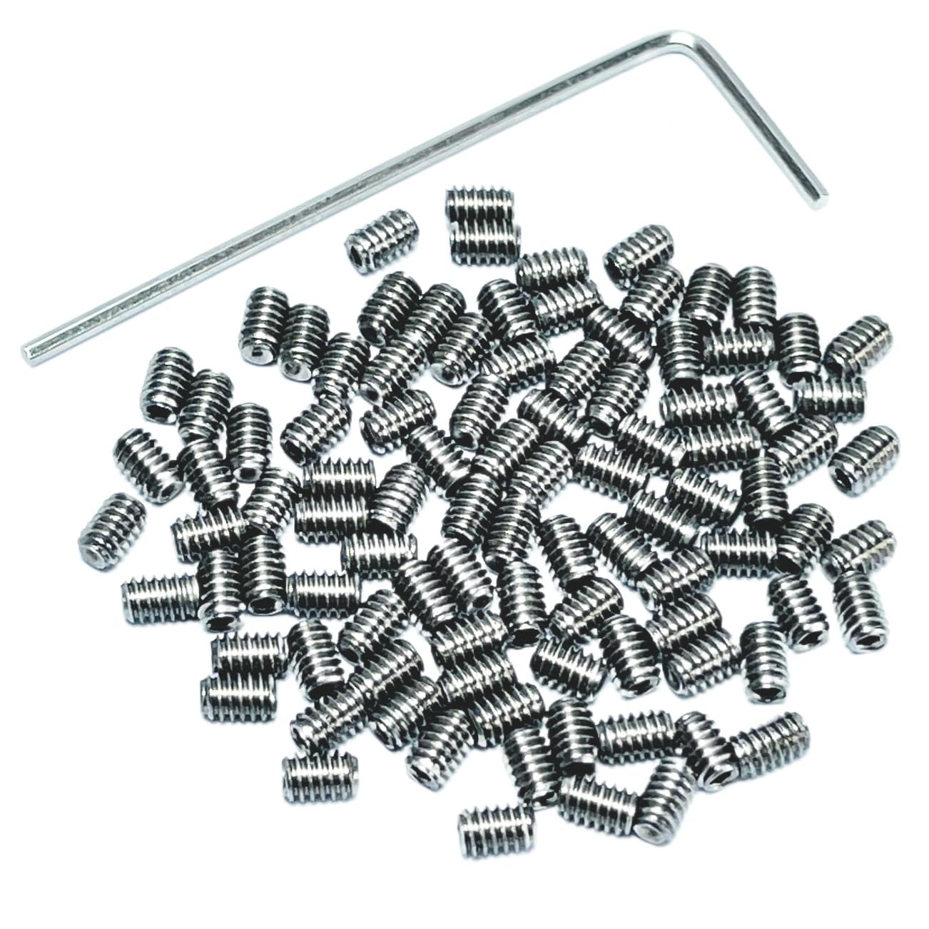 ZDingTech 100pcs M2 x2mm Set Screws Stainless Steel Set Screws, Including 1 Hex 0.9mm Drive Wrench for Grub Screws Bolts. Discription: Socket Set Screws are commonly used to secure an object within or against another object, such as securing a pulley or gear to a shaft. These set screws are Headless Screws which are commonly called Blind Screws or Grub Screws,allen screws. These headless screws comes with a Hex Socket in which a Hex Allen Wrench is inserted for tightening and loosening of the screw. also for Towel Rack Door Knob. 2mm x 2mm Set screws Hex are also used in applications where a flat surface is important, such as handles, grips, surfboard fins, and furniture or machine assembly. M2 set screw 2mm lengh Hexagon socket screws have a cup tip, which produces a thin edge and can penetrate deep into a hard surface for firm fixation. The fastener is headless and contains an internal hex driver. Use an Allen key (hex wrench) to fix it with the required torque as needed. Although they are often used in machinery, they can also be found in homes to secure window cranks to window operators or to secure indoor door handles to spindles. The length is measured from the top of the fastener to the bottom of the cup point. Color: As shown DIMENSIONS: Set Screws Diameter: 2mm Thread: The each Thread pitch is 0.4mm. length: 2mm . Material: 304 Stainless Steel. Head Style:Oval Point Indentation. Drive System: Recessed Hex. Quantity: 100 pcs. Package include: 100 pcs M2 X 2mm Set Screws. 1pcs x 0.9mm Allen Wrench,Hex Drive Wrench.