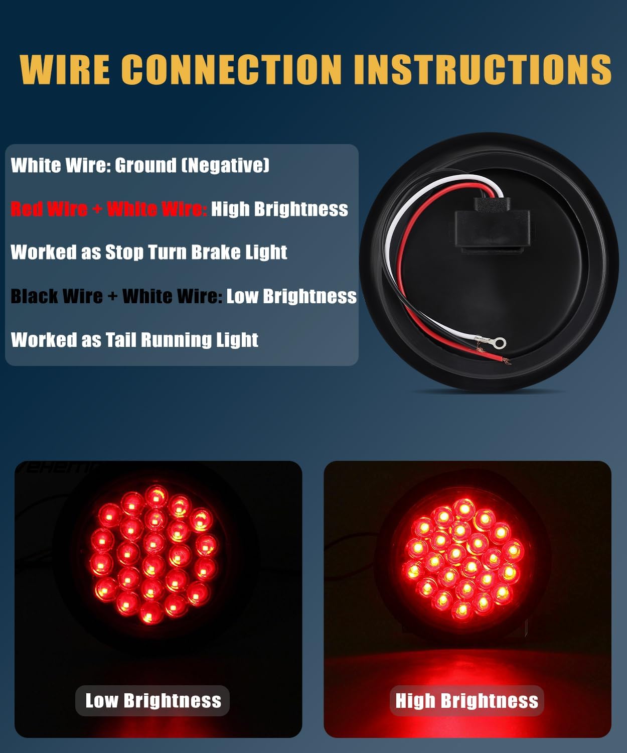 | Included Components | 10PCS of 3 prong wire plugs, 10PCS of 4 Inch Red Round LED Trailer Tail Lights, 10PCS of rubber grommets |