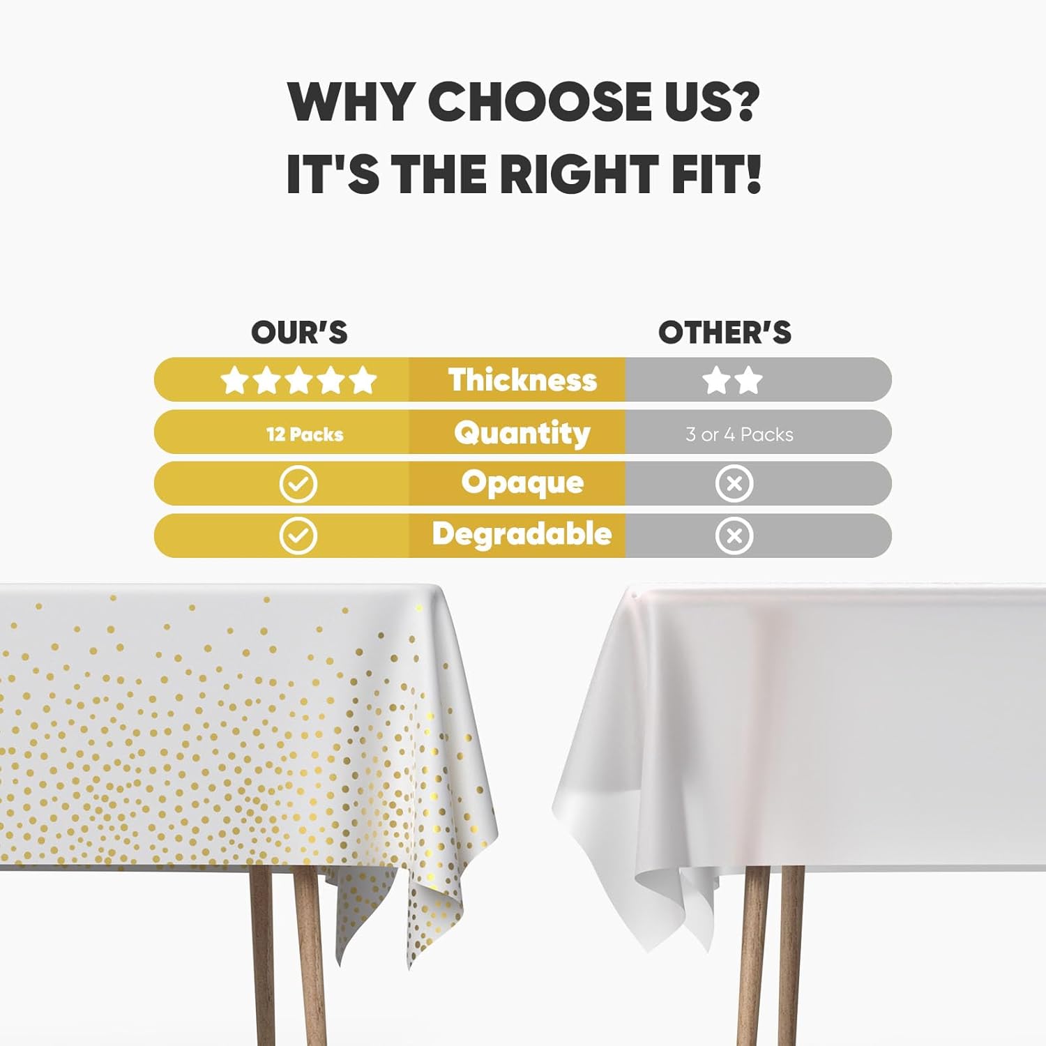 | Included Components | Disposable Tablecloth 12 Pack |