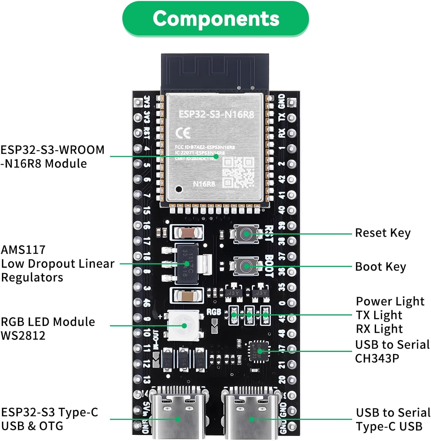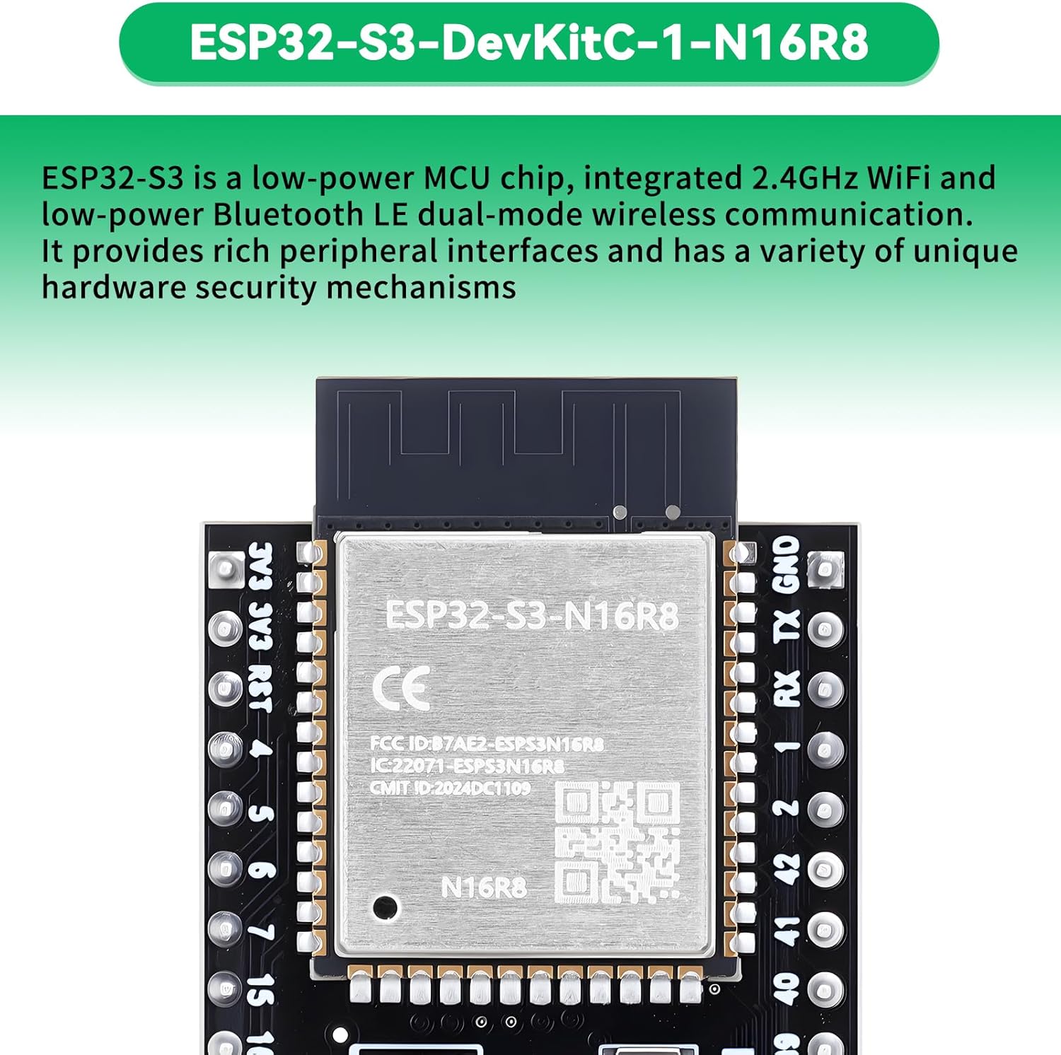 | BuiltIn Media | 2 Pack ESP32-S3-DevKitC-1-N16R8 Development Board with Expansion Board |