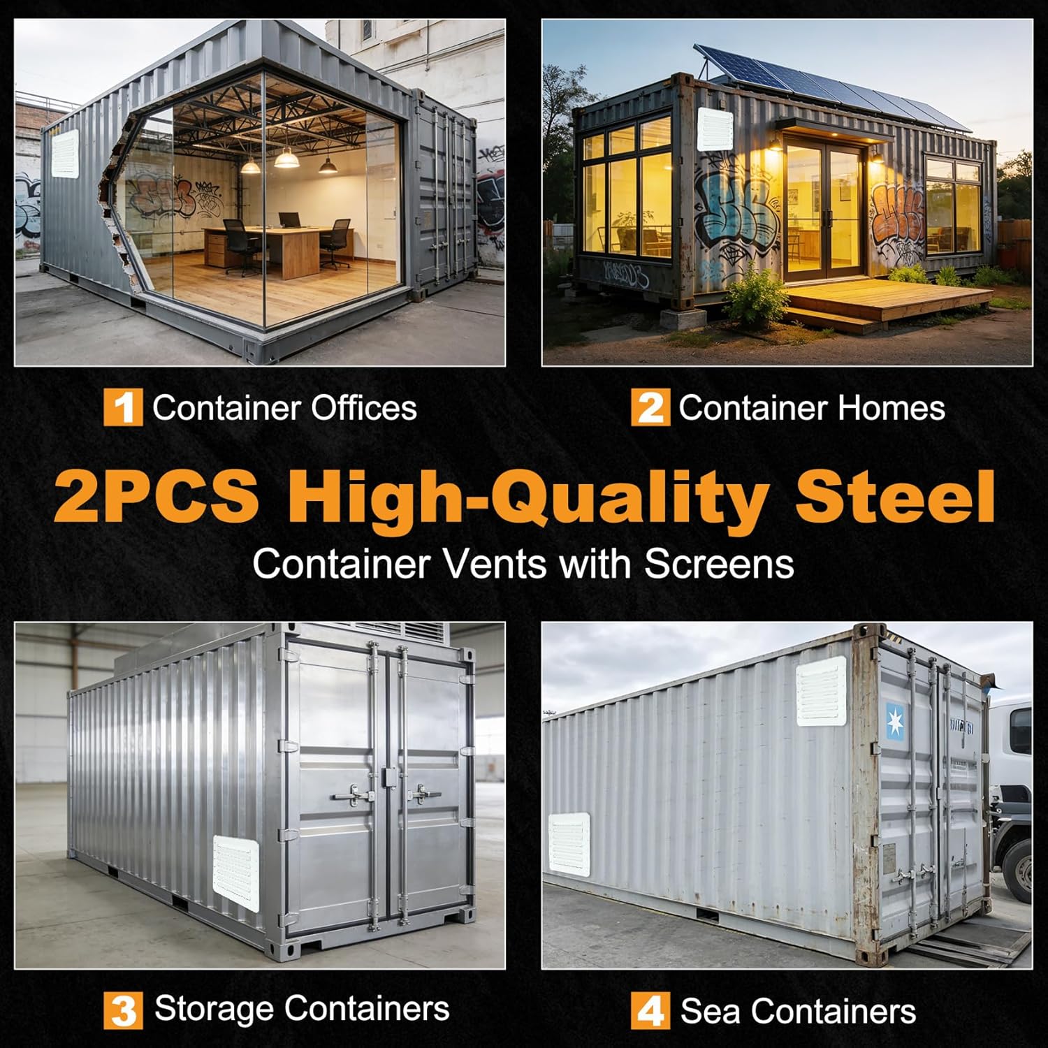 2 Pack Steel Shipping Container Vents with Screens, Heavy Duty Shipping Container Air Vents with Metal Mesh, Increase Air Circulation, Air Vent for Shipping Container House, Offices and Cabins