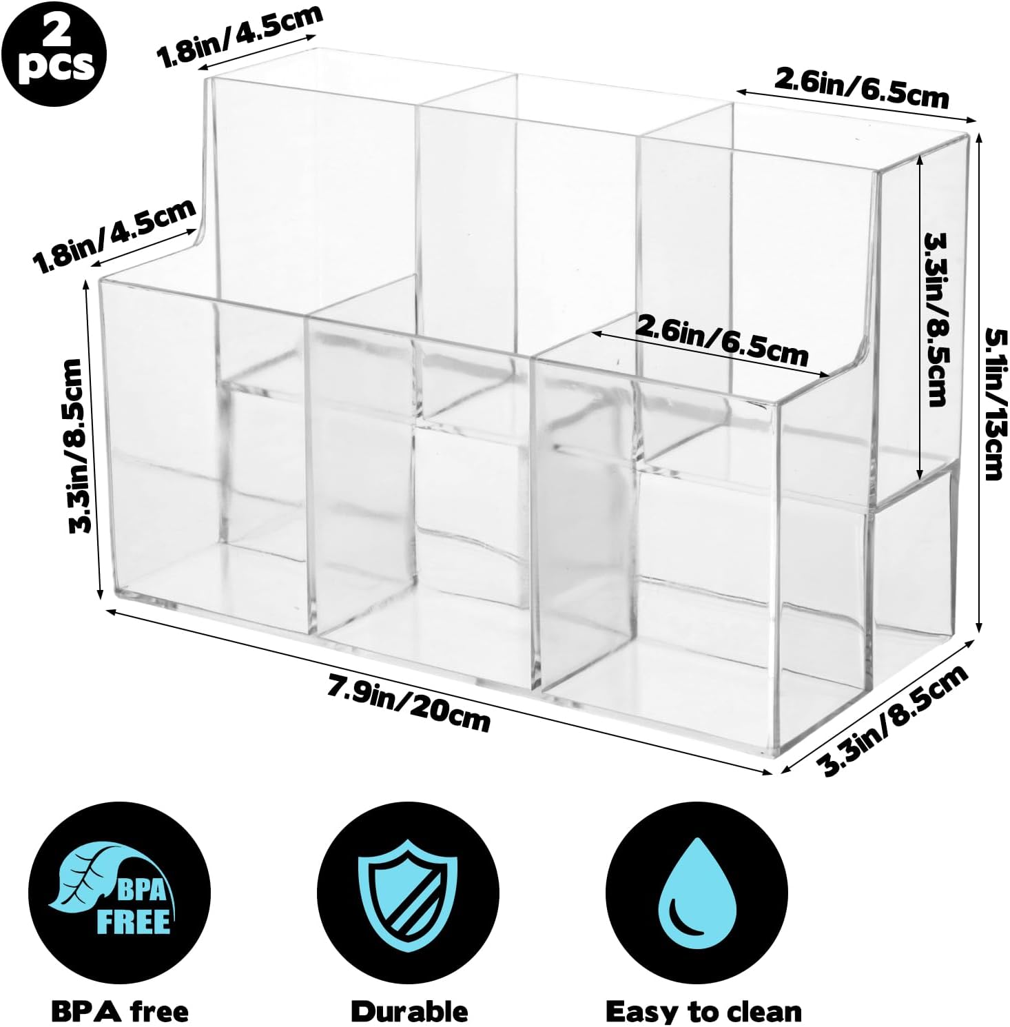 Features:The drink packet organizer is perfect for storing beverage wrappers, instant coffee, and even makeup brushes and office supplies. It's also ideal for storing other office items; place it in the pantry, cabinet, or on a desk to keep your home and kitchen neat and organizedSpecifications: Material: Acrylic Color: as shown in the picture Size: 7.9*3.3*5.1inchPackage includes: 2 Pack Drink Packet Organizer
