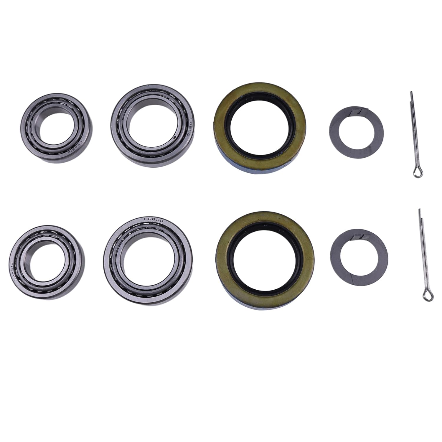 Part Number: Inner bearing L68149 Inner race L68111Outer Bearing L44649 Outer race L44610double lip grease seal 10-19 (171255TB)Application: Compatible with 3500 Lbs Trailer Axle 84 SpindlePackage Includes:2 x inner bearing2 x inner race2 x outer bearing2 x outer race2 x double lip grease seal
