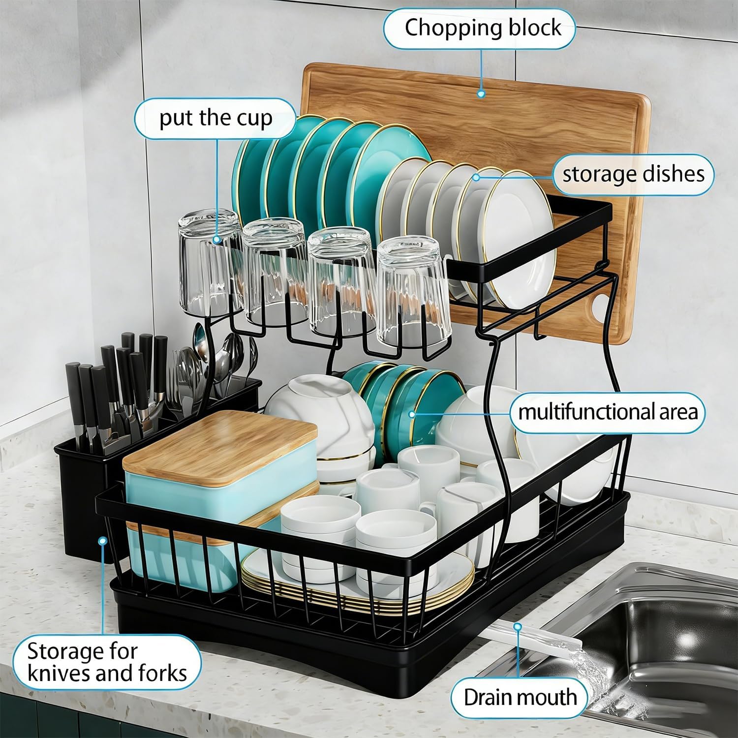 Material: Carbon Steel + Plastic Features:-- Automatic Drainage-- Sturdy & Aesthetic-- Easy Assembly, No Screws Needed-- High Load Capacity Package Contents:-- 1 * Dish Drainer Note: Manual measurement only. Size may have a 1-2 cm error.