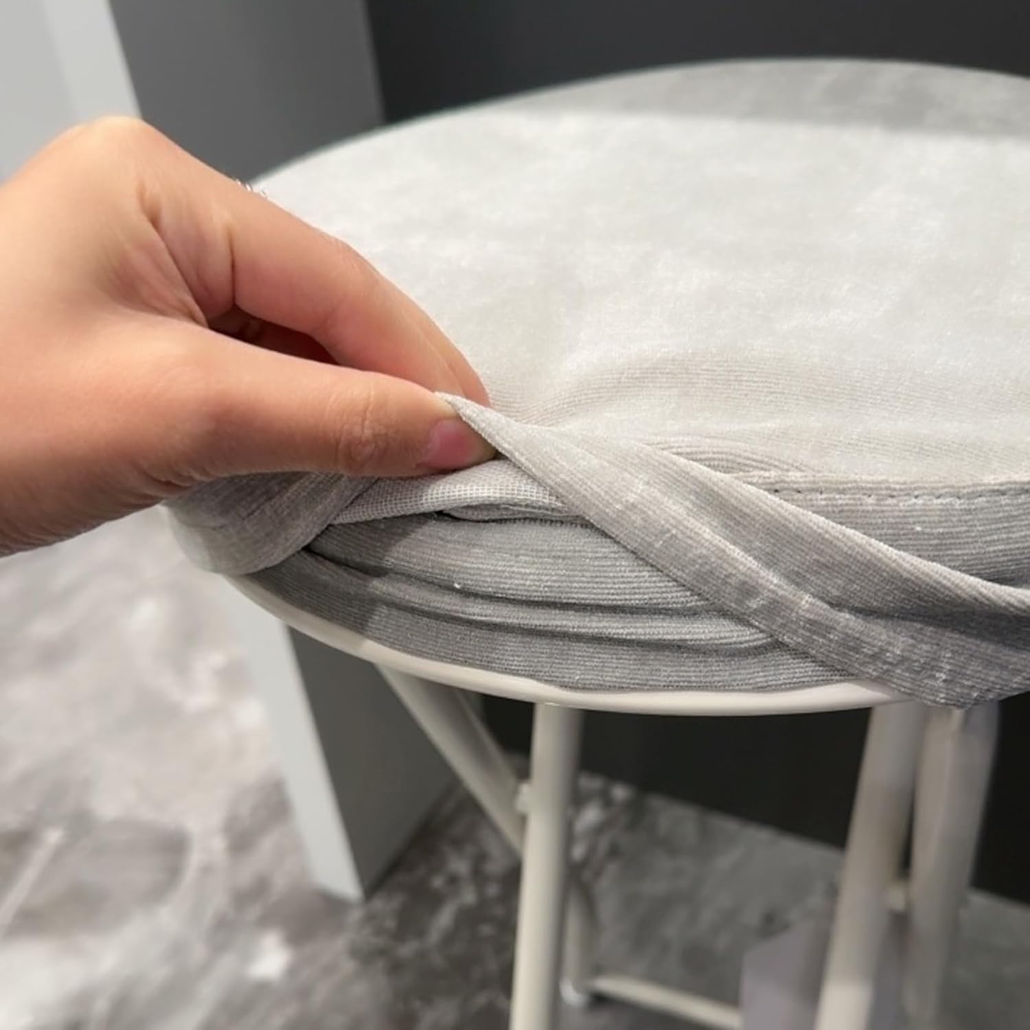 Folding stools double as living room/dining room for unexpected guests.The high seat height makes it ideal s and kitchens.Folding stool can be used when putting on shoes at the entranceDue to its compact structure, placed in limited spaces such entrances restrooms. Recommended people who live alone or alone.Has a locking feature prevent legs from closing automatically.When folded, simply pull knob raise seat.Color: blue, gray, khakiMaterial: Steel frame + cushioned seatMaximum load capacity: 150kg/330lbsSeat size: 30x30cm/12x12inchHeight floor: 60cm/24inchSuitable 90-95cm/35.4-37.4in sPacking list: x1Notice:Manual measurement, please allow slight errors size.Colors may vary slightly due different screen displays