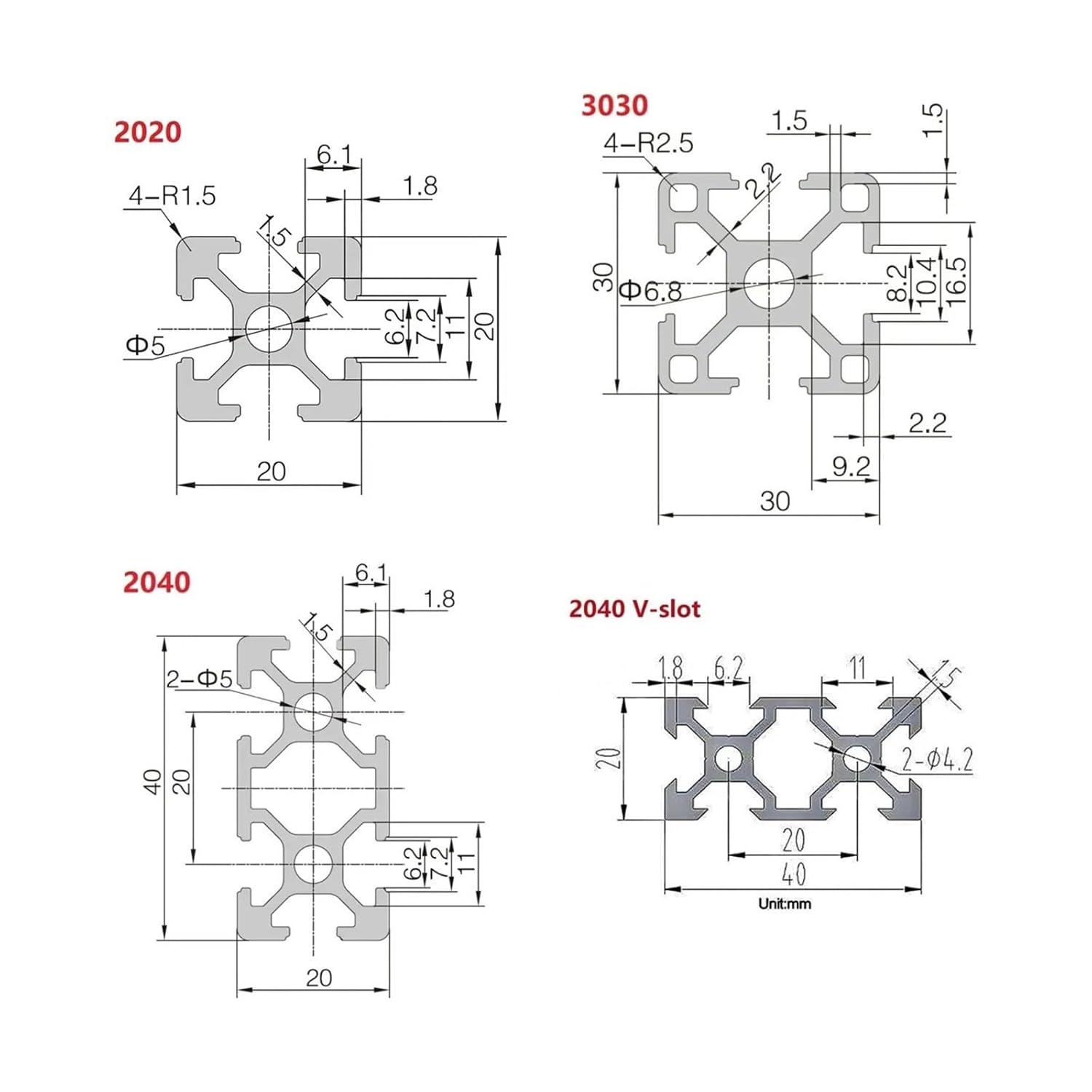 Sheets & Plates2pcs 2040 3030 2020 Aluminum Extrusion 100-1000mm T-SlotSpecification:Type: 20202040 3030 EU standard industrial aluminum profileMaterial: Aluminum alloy 6063-T5Color: SilverLength: 100-1000mmSlot type: T-slotSlot width: 6mm (2020 2040) / 8mm (3030)Package includes:2 x 2020/2040/3030 aluminum profilefeature:Aluminum profiles are often used to manufacture CNC machine tools, 3D printers, instruments, brackets, furniture, etc.It is a great material for frames because they are adjustable and can be secured with T-slot nuts on all 4 groove sides.High strength and hardness, durable.notes!We can customize any length if you need, please feel to contact us before purchasing.