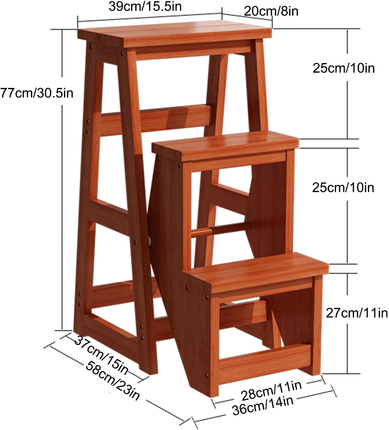 Introducing our versatile Folding Step Stool, a practical solution for both adults and children, ideal for a variety of indoor settings including kitchens, libraries, and more. Crafted from sturdy pine wood, this three-step wooden stool boasts a remarkable load capacity of 80kg (176lbs), providing reliable support for all your reaching needs. Designed with an intelligent flip cover, this stool offers a clever storage solution, helping you maintain an nized and clutter-free environment. The rounded corners enhance safety, reducing the risk of collisions, making it an excellent choice for families with children. Its thickened, reinforced plate ensures stability during use, giving you confidence as you tackle everyday tasks. Perfect for accessing high shelves, changing shoes, or showcasing plants, this step stool effortlessly integrates into your daily routines. Available in light walnut, dark walnut, and black, its sleek design complements any home decor while serving as a functional addition to your space. The package includes the wooden ladder chair and mounting screws forassembly. Please note that the step stool is the only item included; other items shown are for decorative purposes only. Due to variations in monitor settings, the actual product color may differ slightly from what you see. Each stool is hand-measured, so please allow for minor size discrepancies. Enhance your home experience with our Folding Step Stool\u2014a perfect combination of style, safety, and functionality, making everyday tasks simpler and more enjoyable.