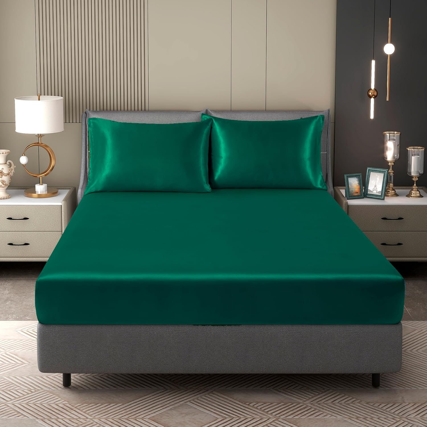 SpecificationMaterial: Satin FabricPillowcase Types: EnvelopeFit the Mattress Height : Deep pockets that fit mattresses up to 15" deep with elastic around the fitted sheet.Available SizeTwin Satin Sheet: 1 Fitted Sheet : 39" x 75" + 16"; 1 Pillowcase: 20" x 30".Twin XL Satin Sheet: 1 Fitted Sheet: 39" x 80" + 16"; 1 Pillowcase: 20" x 30".Full Satin Sheet: 1 Fitted Sheet: 54" x 75" + 16"; 2 Pillowcases: 20" x 30".Queen Satin Sheet: 1 Fitted Sheet: 60" x 80" + 16"; 2 Pillowcases: 20" x 30".King Satin Sheet: 1 Fitted Sheet: 78" x 80" + 16"; 2 Pillowcases: 20" x 40" Customer ServiceCounfeisly offers a 90-DAY MONEY BACK GUARANTEE for any reason.If you are not fully satisfied with our purchase experience, please reach out to us and we would be happy to help you with a replacement item or a full refund.Any quality related issues, defective products and other relevant issues, please feel free to contact us.