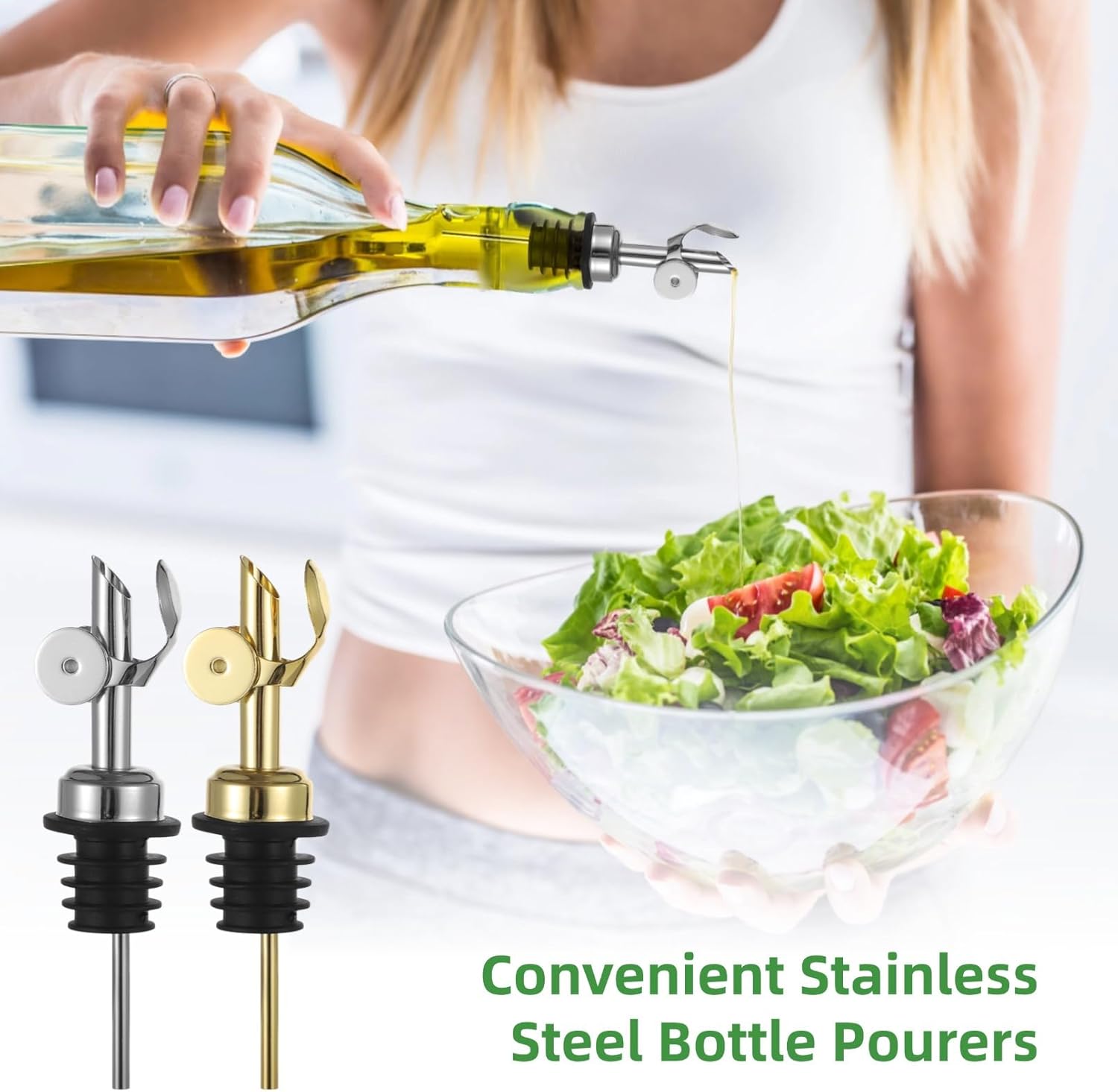 Color:black + silver Material:stainless steel Product Size: 4.72 in x 1.18 in x 0.39 in Package Includes:oil pourer spout x 12 Note: - Please refer to the measurement. Tiny measuring error is allowable in normal range. - There might be a little color difference due to the monitor, camera or other factors, please refer to the physical item.