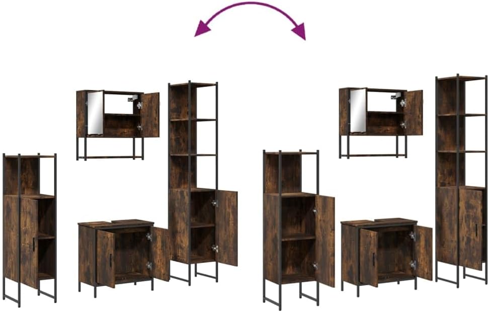 Elevate your bathroom experience with our 4-piece bathroom vanity set, expertly designed to blend functionality and style. Crafted from durable engineered wood, this set not only stands up to moisture but also adds a sophisticated touch to your decor. The combination includes a vanity cabinet that accommodates sink integration and a sleek floating mirror cabinet, making it ideal for enhancing organization in any bathroom. This versatile setup maximizes under-sink storage while utilizing wall space, freeing up valuable floor area—perfect for smaller bathrooms or corner installations. The beautiful smoked oak finish adds warmth and elegance, seamlessly fitting into various design themes. Each component is thoughtfully designed to simplify your daily routines, providing a clutter-free sanctuary where you can unwind. Whether you are getting ready for the day or enjoying a relaxing evening, this modern vanity set enhances your bathroom’s functionality without compromising style. Upgrade your space with our bathroom vanity set and enjoy the balance of practicality and elegance in your home.