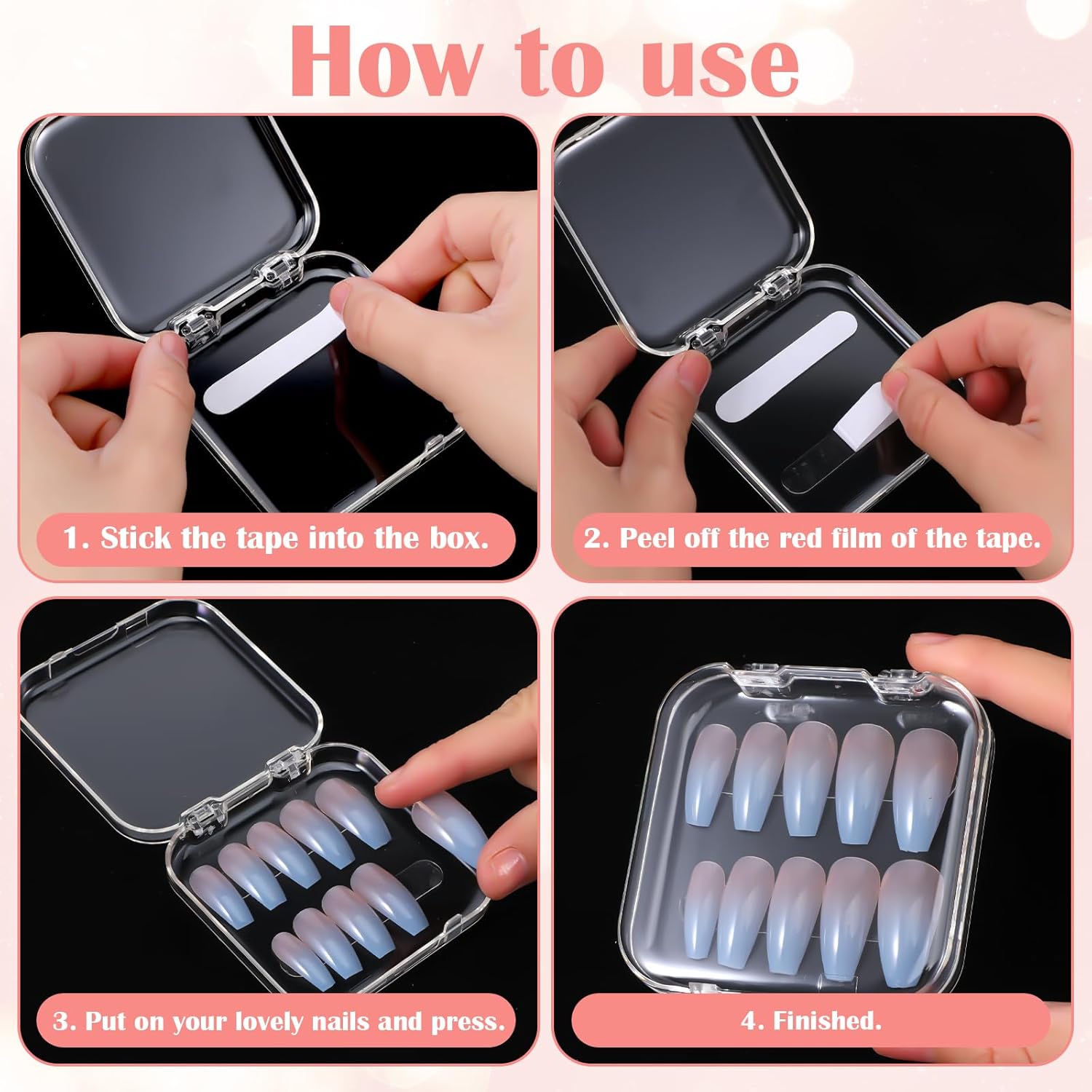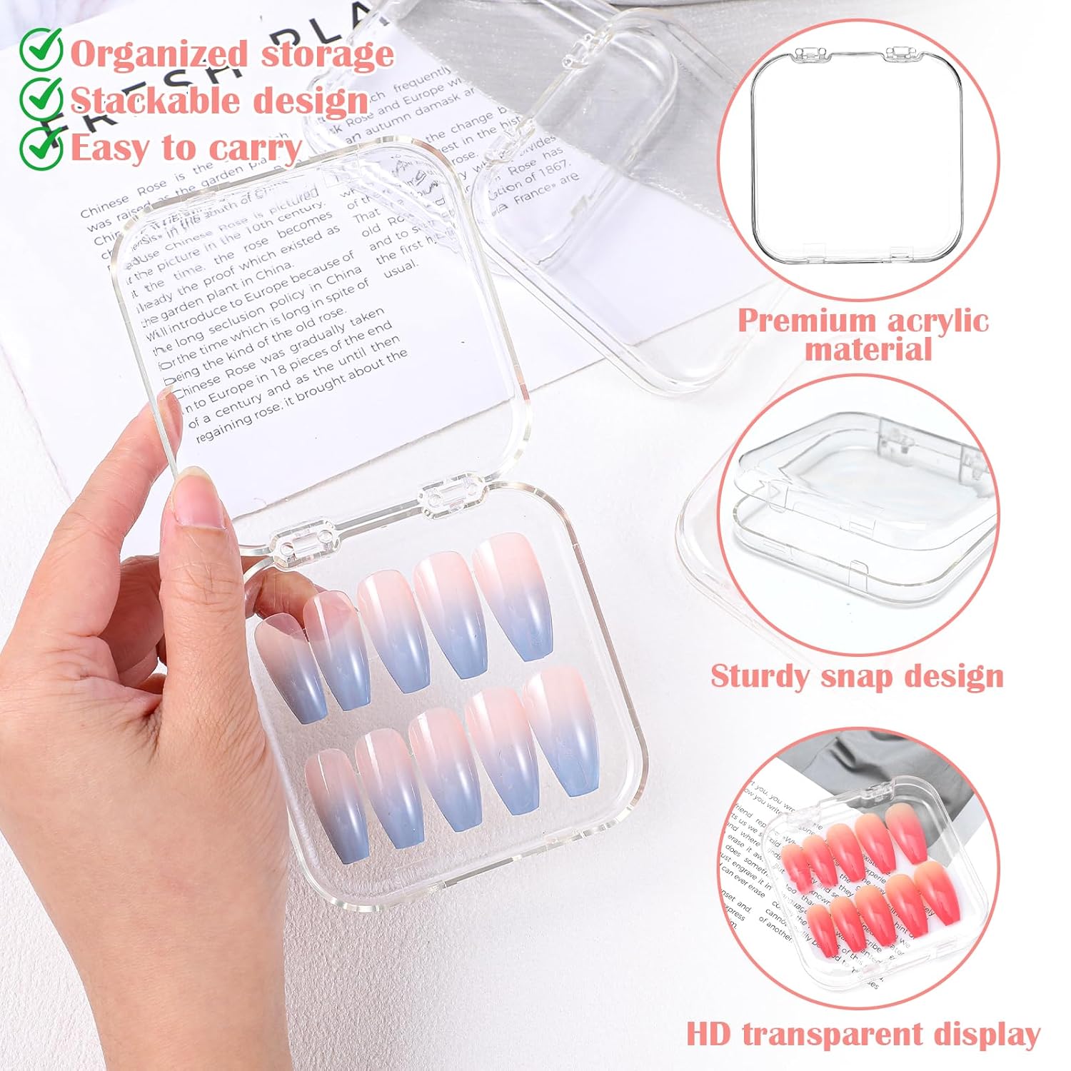 Welcome to our store!Features:Our 48 pack press on nail storage box set is designed for optimal organization, display, and protection of your artificial nails. These clear acrylic nail boxes are perfect for nail salon professionals, nail art businesses, or personal use, providing a sleek and professional way to store and showcase your press on nails. The included adhesive tapes ensure your nails stay securely in place, while the compact and stackable design makes them ideal for efficient space management and portability.Specification:Material: High-Quality AcrylicColor: ClearSize: 3 x 3 inchesPacking List: 48 PCS Press On Nail Storage Boxes180 PCS Adhesive Double-Sided TapesNotes:Manual measurement, please allow slight errors on size.The color may exist a slight difference due to different screen displays.