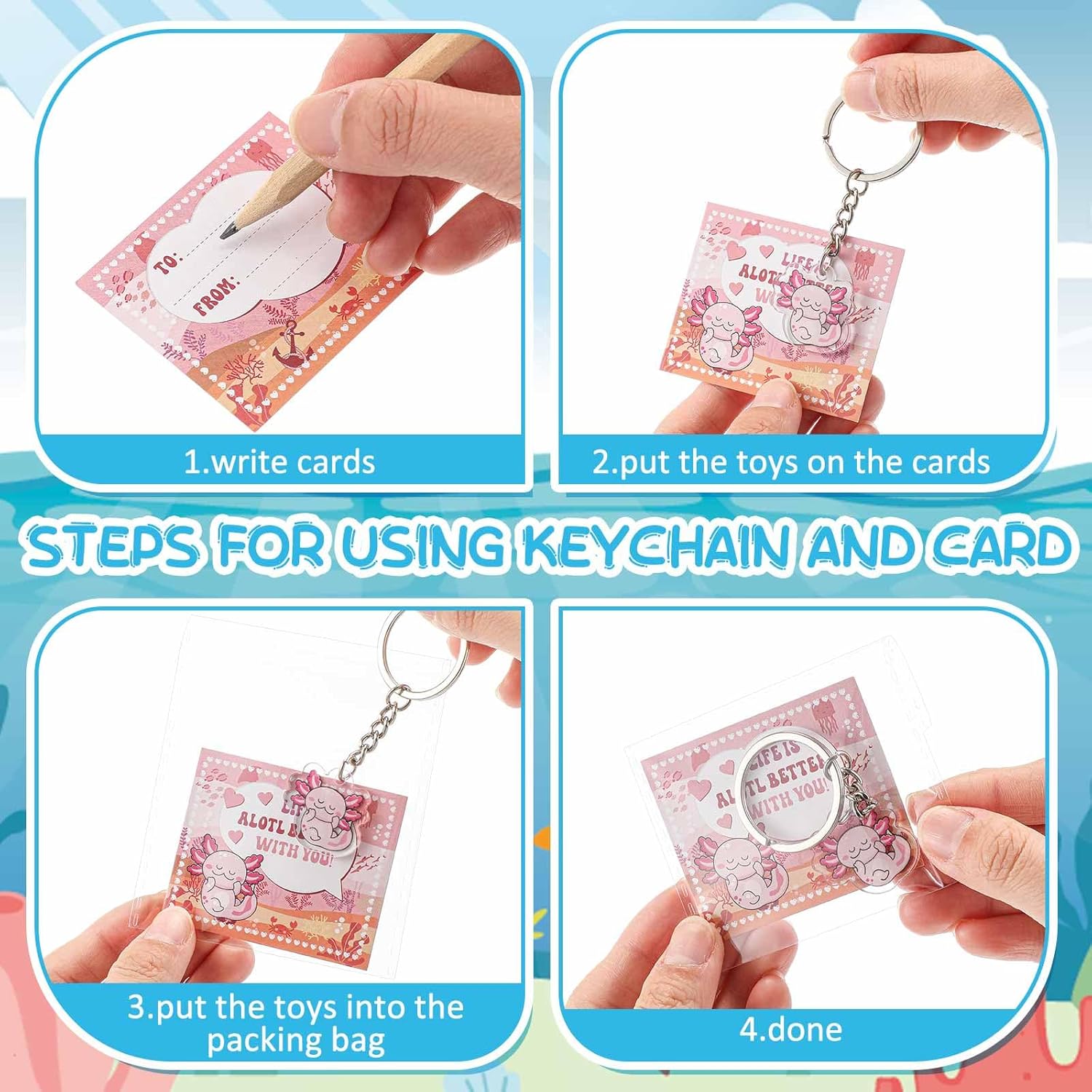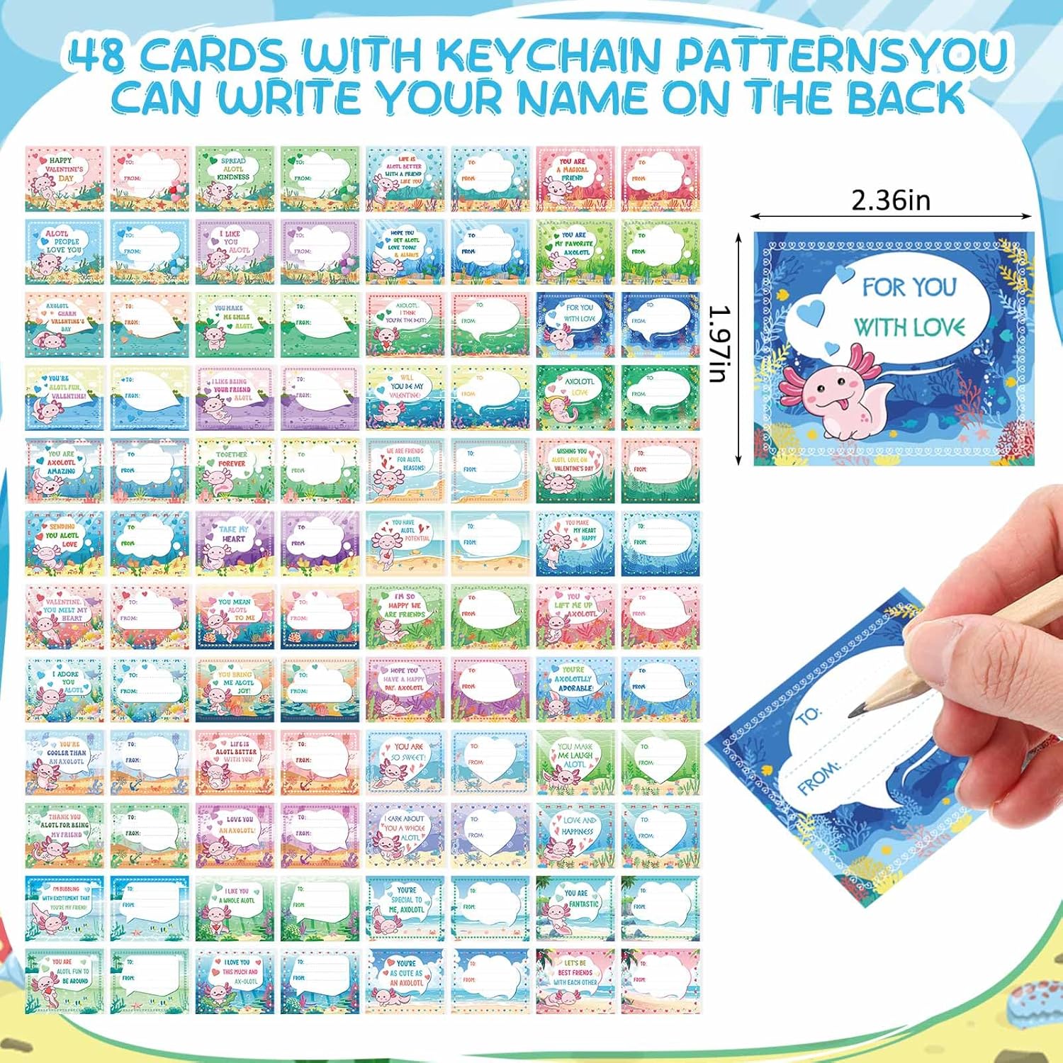 Features: Nice color: The eye catching shade adds a cheerful, love-filled vibe to the gift set, making it an ideal Valentine's present. Various Occasions: Axolotl party favors are nice for animal party supplies decorations, camping picnic gatherings, birthday parties, rave parties, family reunions, weddings, holidays, concerts. Material: Keychain material: acrylic Gift card: paper Main color: pink Size: Keychain acrylic sheet: approx. 0.98 x 1.18 inches/ 2.5 x 3 cm (WxL) Length of keychain: approx. 3.23 inches/ 8.2 cm (WxL) Card: approx. 2.36 x 1.97 inches/ 6 x 5 cm (WxL) Bag: approx. 2.36 x 1.97 inches/ 6 x 5 cm (WxL) Package includes: 48 x Valentine axolotl keychain gift set Notes: Manual measurement, please allow slight errors on size. The colour may exist a slight difference due to different screen displays.