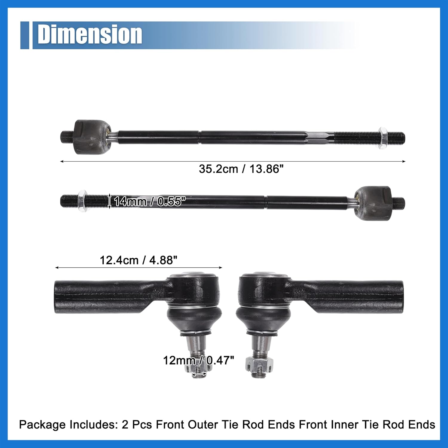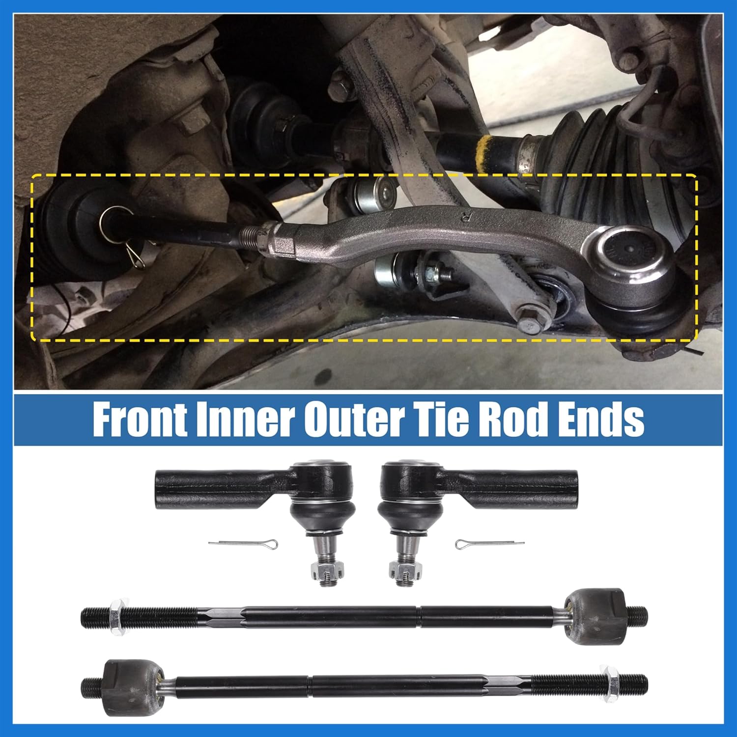 • Design: PACKAGE INCLUDES: 2 x Front Outer Tie Rod Ends, 2 x Front Inner Tie Rod Ends