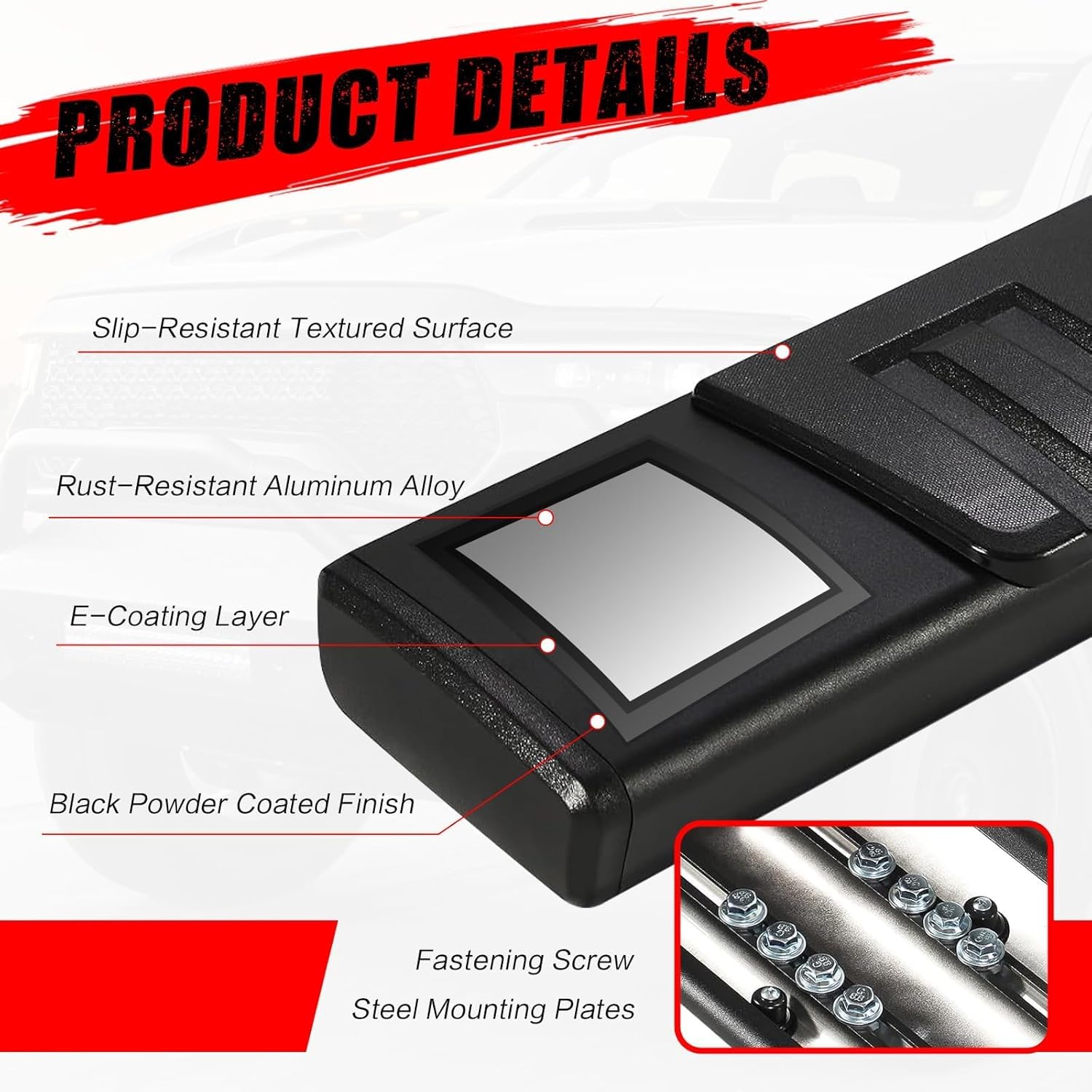 Upgrade your 2019-2026 Chevy Silverado/GMC Sierra 1500,2020-2026 2500 3500HD Crew Cab (4 full-size doors) with these 6-inch Aluminum running boards—blending unbeatable durability, safety, and rugged style. They’re built to solve daily accessibility hurdles while shielding your truck from the elements.Crafted from high-grade Aluminum, these side steps resist rust, corrosion, and tarnish even in rain, snow, or off-road mud. The 6-inch wide, flat step surface offers ample stable footing for kids, seniors, or gear-loaded hands, with a subtle non-slip texture for safety in wet/icy conditions.Installation is a breeze: they bolt directly to your truck’s existing mounting points (no drilling required) and come with all hardware and clear instructions for a 1-2 hour DIY job. Beyond functionality, these running boards add a sleek, tough edge to your truck while protecting the lower body from road debris, rocks, and accidental door dings. A reliable upgrade for work trucks and daily drivers alike.