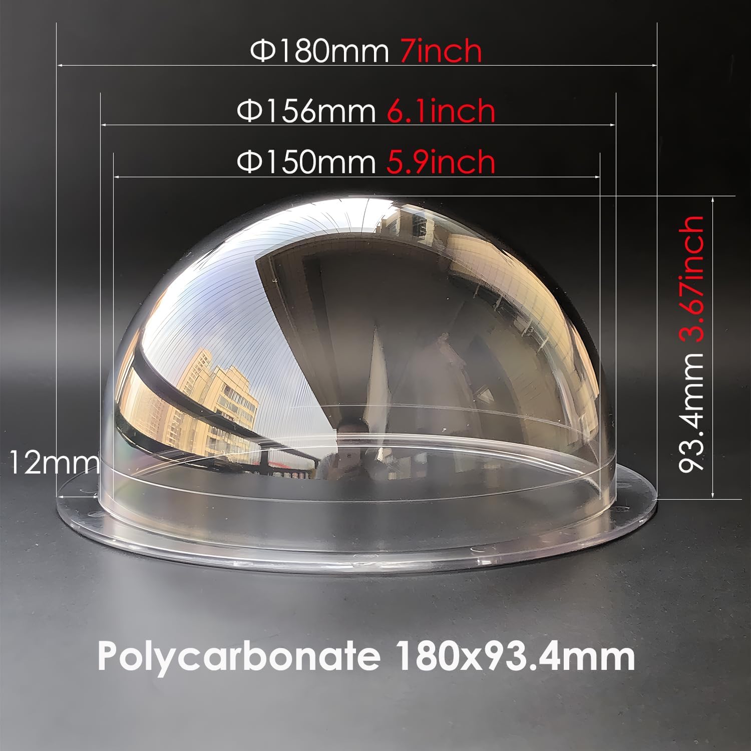 This is a 6.14 inch half dome lid made of high-quality polycarbonate material, similar to a plastic glass dome, but with shatter resistant and scratch resistant, and higher hardness. The mold for this optical dome cover meets high-precision optical standards and is produced in a dust-free injection molding workshop with excellent optical performance. It’s suitable for external use and beautifully made. This PC dome cover can be used in many applications from CCTV camera dome replacement, drone lens protection, skylight, food cover, product displays, dog & cat bubble windows, home decoration, crafts, underwater devices and more.