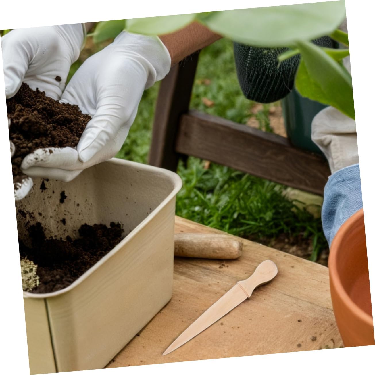Package List 6 x Garden Planting Hole Digger Characteristics -Color:Khaki wood gardening tool -Size:14.70X2.00X2.00cm/5.78X0.79X0.79in gardening planting spike -Great present idea: this gardening tool is an ideal present for friends or family who enjoy gardening, helping them achieve better planting results wooden garden dibbler -Material:Wood wooden handled garden dibber -Sturdy and reliable: constructed from materials, this tool is designed to withstand the demands of regular gardening use garden hole punchers -Comfortable grip: the wooden handle offers a comfortable and secure grip, allowing you to work in your garden for longer periods without discomfort garden soil puncher -Easy maintenance: the smooth surface of the hole puncher makes it easy to clean, ensuring it remains condition garden hole digger w -Versatile functionality: for planting, digging, and sowing, this tool is a musthave for any gardener gardening planting hole diggerGoods Descriptiongardening planting hole digger Its sharp tip easily penetrates the soil, creating uniform holes for planting.wooden garden spike This wooden-handled soil puncher is an essential tool for any gardening enthusiast.gardening planting tool Whether you're planting flowers, vegetables, or herbs, this tool helps you achieve professional results with minimal effort.planting hole maker The wooden handle offers a natural, comfortable grip, allowing for precise control