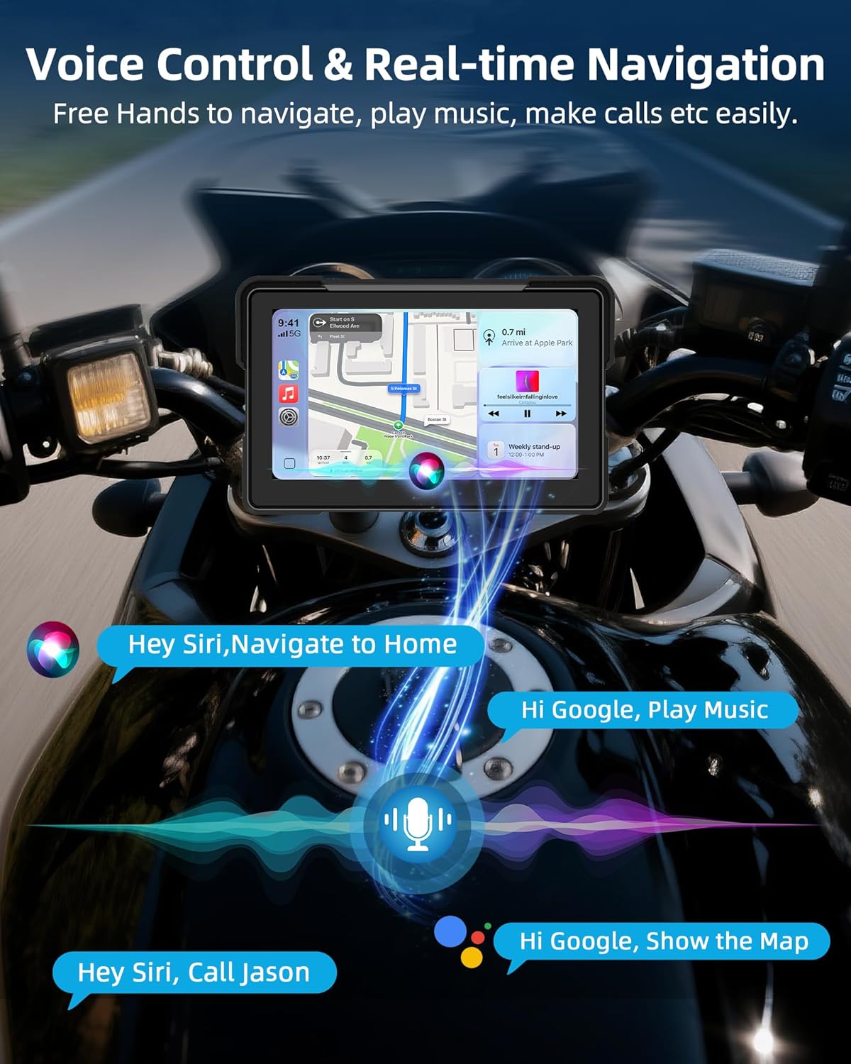 | Additional Features | 7inch wireless motorcycle carplay screen, Dual 2K Dashcam, GPS Navigation for motorcycle, Remote Control, Voice Control |