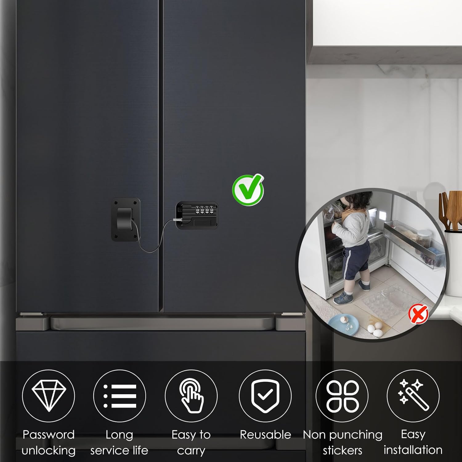 Description Kids fridge lock is made of metal and ABS material, firmly locks the fridge door and provides better protection. No need to worry about your child opening the fridge or drawer and causing a mess. Simply enter the code to open the lock, no key required. Convenient and efficient. Key Features No Key Required: This child safe fridge lock is designed with a combination lock, no key is required, just set the code and press the button to open the fridge lock, easy to operate. Safe Refrigerator Lock: The refrigerator lock is dedicated to locking the refrigerator door, preventing the refrigerator from being opened randomly, avoiding access to dangerous items and causing chaos. Specification Product name: Fridge Lock Material: ABS + stainless steel + zinc alloy Color(optional): Black, White Size: 31.5 x 4.5 x 2cm Application: drawer/refrigerator/window/cabinet Notes: 1.There may be slight differences between the picture and the actual color of the commodity. We will try our best to show you the exact color. 2.Please allow slight dimension difference due to manual measurement.