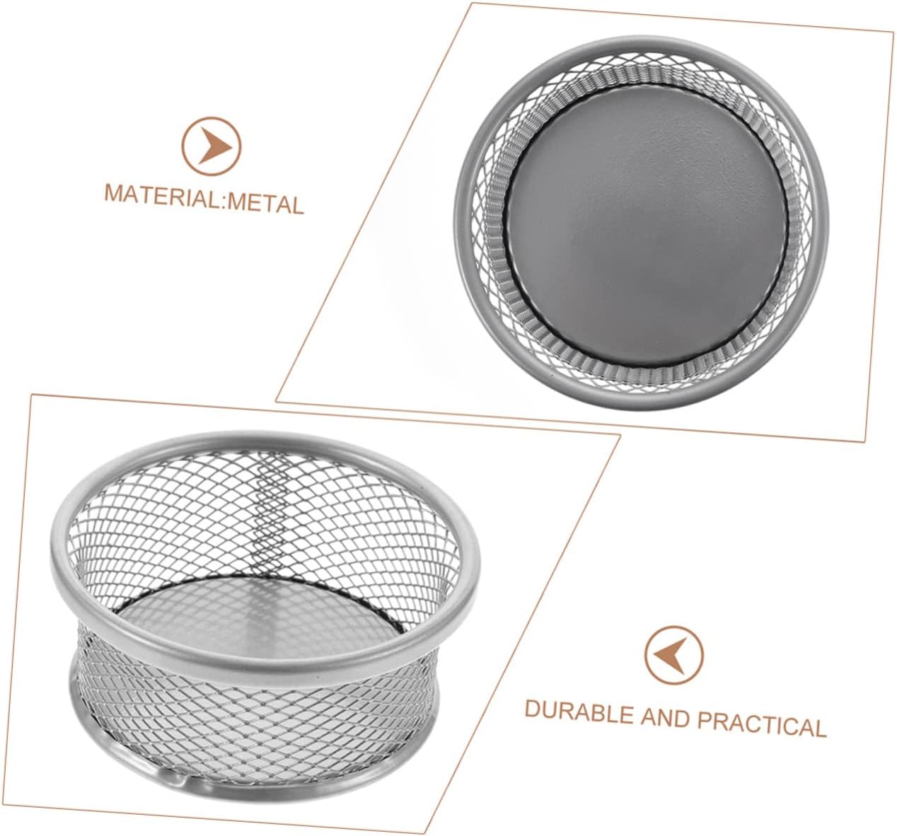 Package Include 8 x Paperclip Holders Features -Material:Metal paper clip holders -Color:Silver desktop mesh holders -Size:9.00X9.00X4.00cm/3.54X3.54X1.57in paper clips holder -Enough quantity to meet your daily replacement needs use. Easy to clean and maintain, save your time and efforts paper clip storage basket. -These Paperclip Dispensers are made of metal material, for your using experience paper clip holder for desk. -Lightweight and compact size, very portable to take along. A nice birthday or housewarming present for your friends, they will like it paper clip organizer for desk. -Metal mesh design, and these mesh paperclip holder can be stacked together when they are not in use, office desk clip. -You can buy them to share with students, colleagues, etc., suitable for students, teachers, homes and offices to create a clean environment paperclip holders.Goods Descriptionpaper clip organizer for desk Very to use, also can be a great present.desktop clip storage rack These small Paper Clip Holders are perfect for your desk, organizing paper clips, and other small office supplies such as rubber bands, binders, headbands, erasers, and so on.mesh paper clip holder Make your desk clean and give you a release in busy life.desktop paper clip holder Sturdy enough and to break and .storage holders for paperclips Manufactured with chosen material for and use