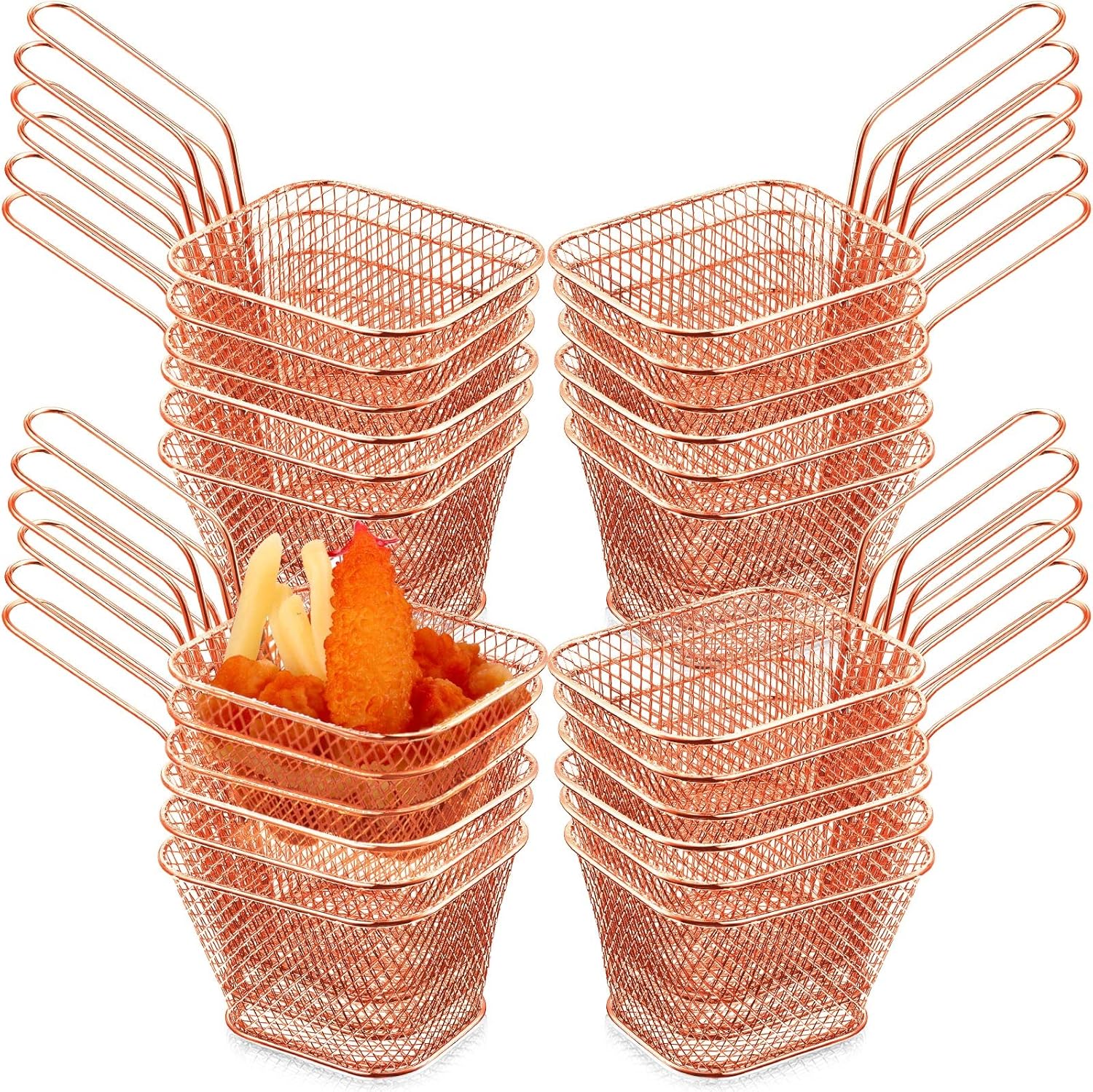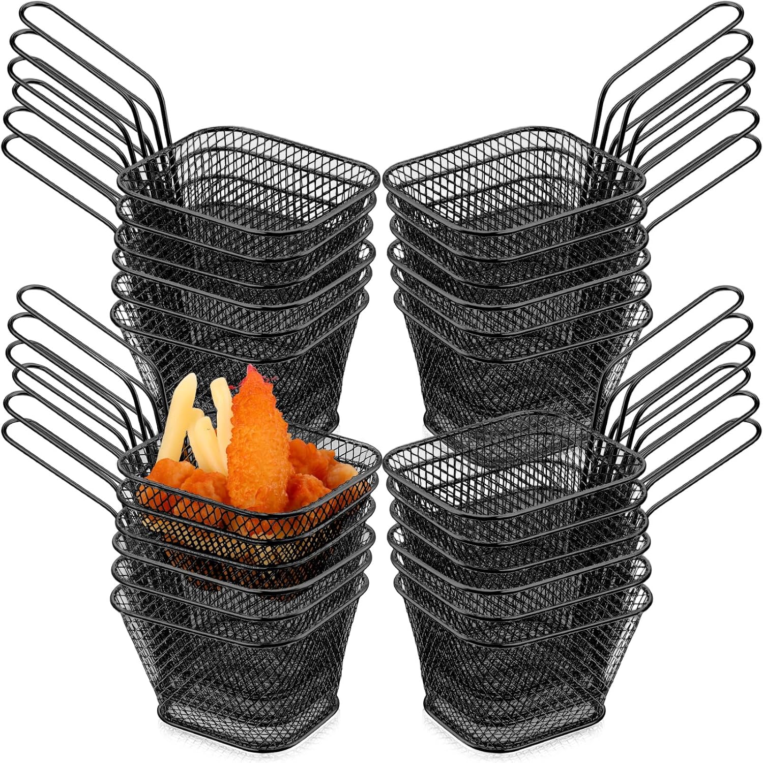 Features: Portable size: The serving baskets measure about 10.5 x 8.5 x 6.3 cm/ 4.1 x 3.3 x 2.5 inches, small size makes them suitable for frying different foods in a frying pan, nice for home cooking. You can also carry them around for barbecue and outdoor camping. Useful and practical gifts: The stainless steel french fry holders with mini cute appearance will be useful and practical gifts for people who have their own restaurants or fast food shops, food will not fall from the small mesh holes, they can use these fries holders for different snacks and fried food, bringing customers a happy mood and a pleasant eating experience. Specifications: Material: stainless steel Color: sliver Size: about 10.5 x 8.5 x 6.3 cm/ 4.1 x 3.3 x 2.5 inches Quantity: 96 pieces Package includes: 96 x Mini fry baskets Notes: Manual measurement, please allow slight errors on size. The color may exist a slight difference due to different screen displays