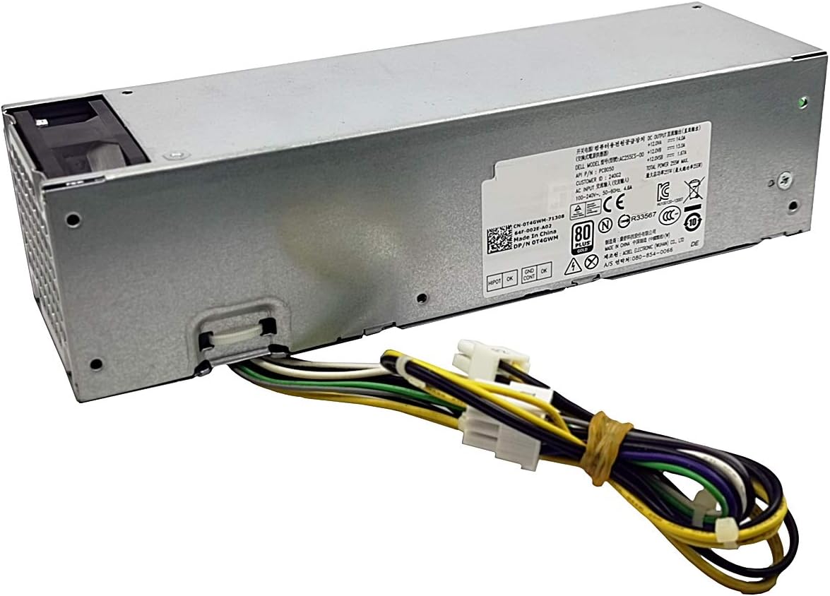 Compatible P/N: PCB050 YH9D7 R7PPW NT1XP 3XRJ0 V9MVK FP16X T4GWM M9GW7 FN3MN Compatible M/N: H255ES-00 D255AS-00 D255E001L F255ES-00 L255AS-00 AC255AS-00 AC255ES-00 DPS-255LB HU255AS-00 PS-3261-2DF Compatible Models: Optiplex 3020 7020 9020 Precision T1700 Small Form Factor (SFF) Systems AC Input(50-60Hz): 100-240V~/4.6A, DC Output: Max Output 255W Connectors: P1 - 8-Pin ATX Power, P2 - 4-Pin ATX Power TIPs:Please Make sure that your power supply with the one of the part numbers and Model Number,All pictures are taken from the real item, please check carefully before bidding.Each power supply is tested before shipping.If you have any pre-sale or after-sale questions please feel free to contact us,we will be happy to assist you.