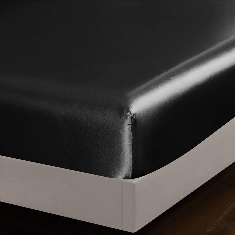 Indulge in the luxurious comfort of this 4 piece king size satin bed sheet set from AiMay. Crafted from high-quality satin fabric, these silky smooth sheets offer an unparalleled sleeping experience. The deep pocket fitted sheet ensures a secure fit on mattresses up to 15 inches deep, while the flat sheet and two envelope pillowcases complete the set. Designed to be wrinkle-free, these sheets maintain their sleek and polished look effortlessly. Available in a rich black hue, this set adds a touch of elegance to any bedroom decor. Experience the ultimate in luxury and comfort with this satin bed sheet set from AiMay. Please note that these sheets are not intended for commercial use and should be cared for according to the manufacturer's instructions.