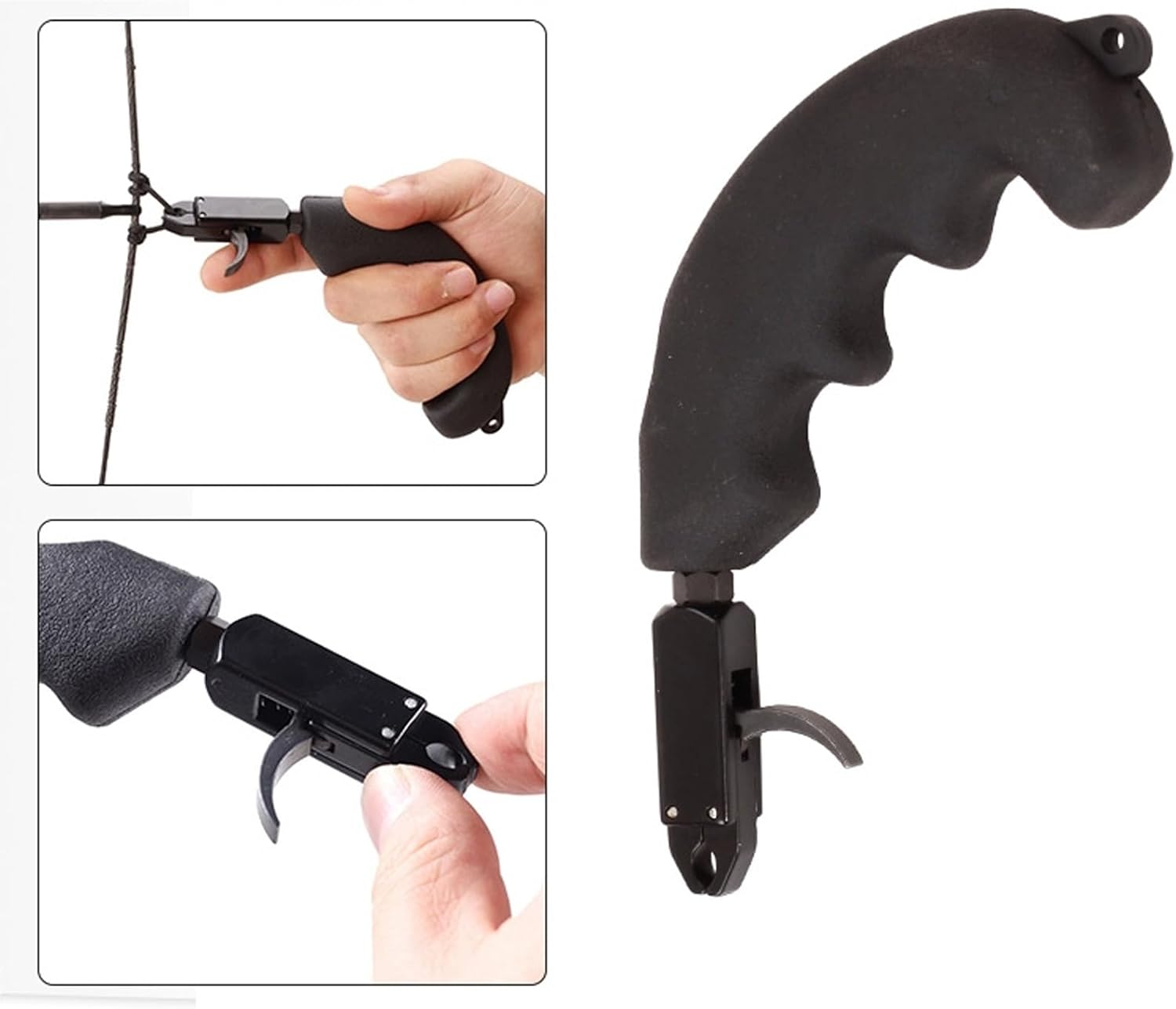 Ditch unreliable releases. This grip release stands out with premium aluminum alloy strength, and manual closure for superior control — no more guesswork, just Precision shots every time.Product name: Index Finger Release AidProduct material: Aluminum Alloy+RubberProduct size: 14.5*10.5/5.7''*5.13''Product weight: 210g/7.4ozProduct features: Metal Pliers Head; Pliers Release; 360° Rotating Pliers Head; Rubber GripProduct color: BlackProduct application: Compound pulley bowProduct Packaging: 1 Index Finger Release Aid