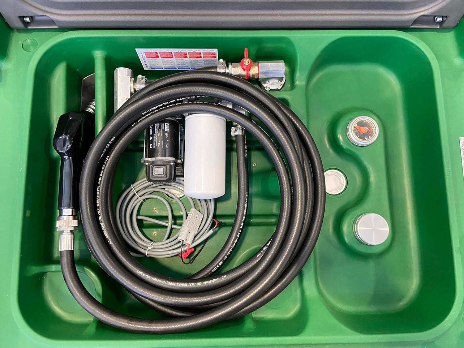 | Color | Green tank with dark grey lid |