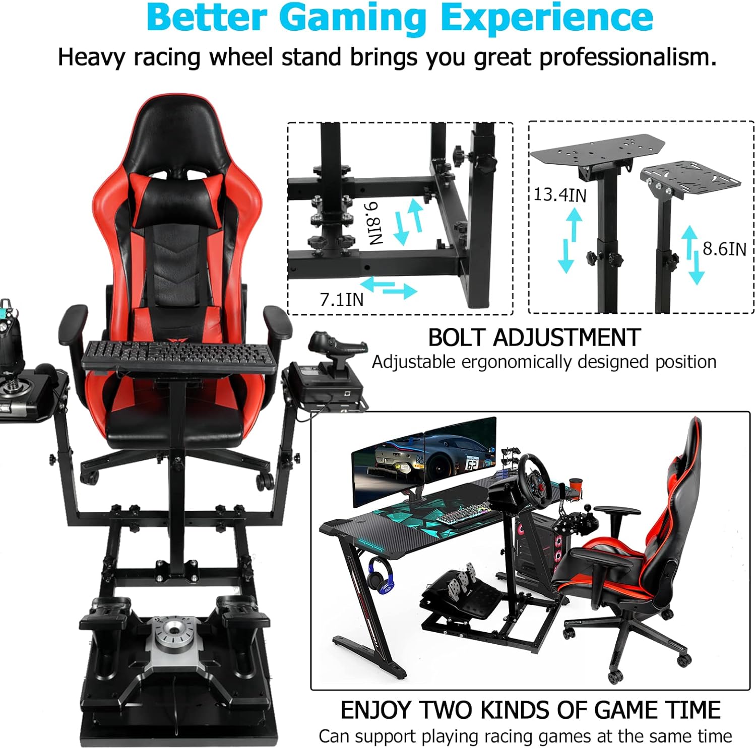 | Additional Features | Adjustable & Compatible Racing Simulator Cockpit with Friction Pad Vibration Dampening |