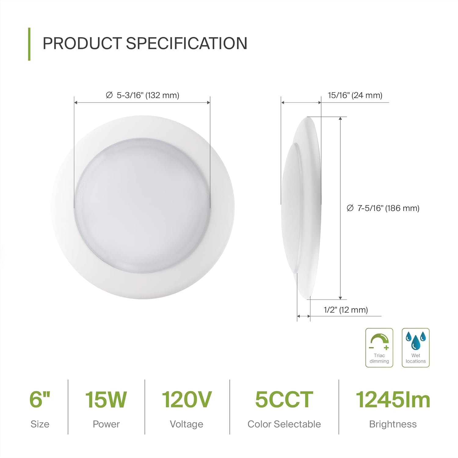 | Other Special Features of the Product | Adjustable Color Temperature, CRI 90+, Dimmable 10% to 100%, J-box or CAN mount installation, Wet rated |