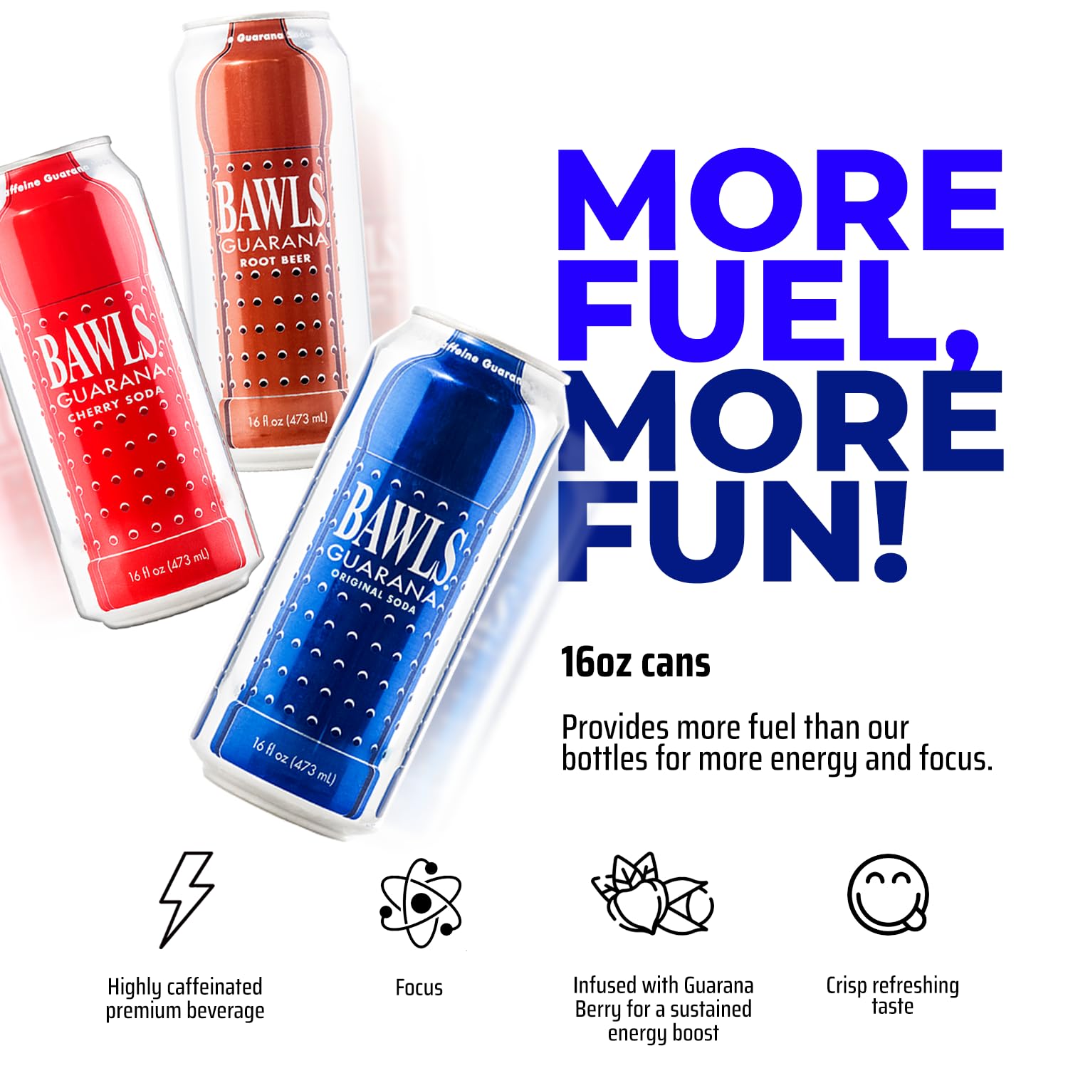 New version - enjoy a variety of BAWLS Guarana 16 oz can flavors with this updated 12-pack! The Original Variety 12-pack now includes 4 cans of each flavor: 4 Original Soda, 4 Cherry Soda, and 4 Root Beer.