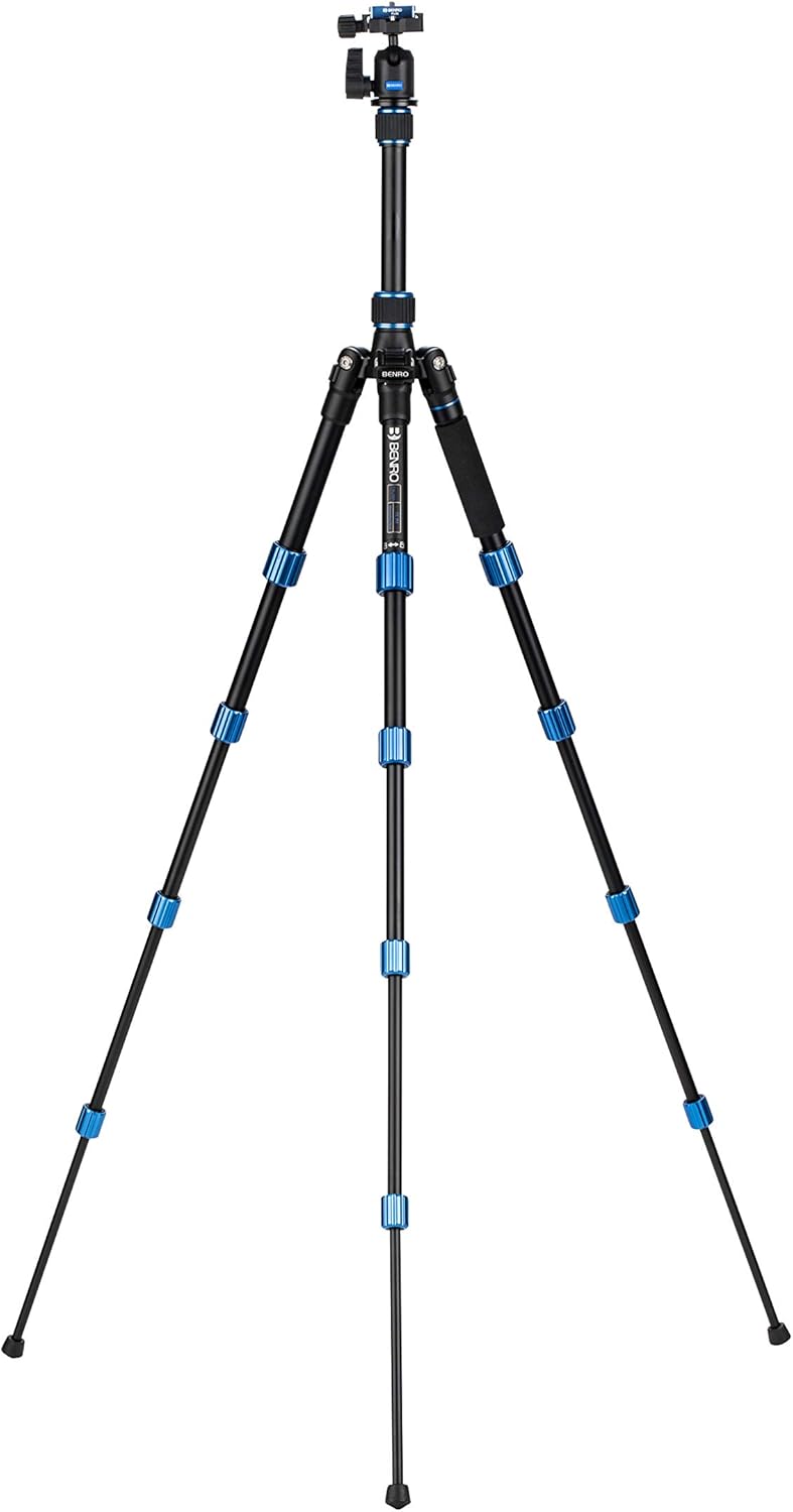 The Benro Slim series has been expanded and now includes two new models that are the perfect travel tripod. Each has 5 sections and the reverse folding design reduces the folded size to only 12.9" (33cm). but don’t let its small size fool you, these tripods open to an impressive 57.1" (145cm) making them a practical solution for photographers who need to travel light but still need to travel with a tripod. There are two models of the Slim travel offering either Aluminum or carbon fiber construction. Aluminum gives strength but carbon fiber remains the ultimate material for lightness and stability. The Slim travel tripod legs are fitted with anodized Aluminum twist locks that only require a quick half turn to lock and unlock. A grooved center column prevents twisting when in use and can be reversed for low to the ground shots. Benro Slim travel features a lightweight shoulder, which has 3 leg positions and each leg can be positioned individually for uneven terrain. A weight hook is located underneath the center column for windy conditions and the rubber feet on the tripod are fixed. Staying level is made easy with a bubble level on the quick release clamp. Both versions of the Slim travel series use the compact N00 head. This removable Aluminum ball head has an oversized ratchet style single locking control knob for easy operation and a panoramic scale. The ball head includes a blue anodized Aluminum Arca-Swiss style quick release plate with a d-ring 1/4"-20 thread. A compact carry case is included.