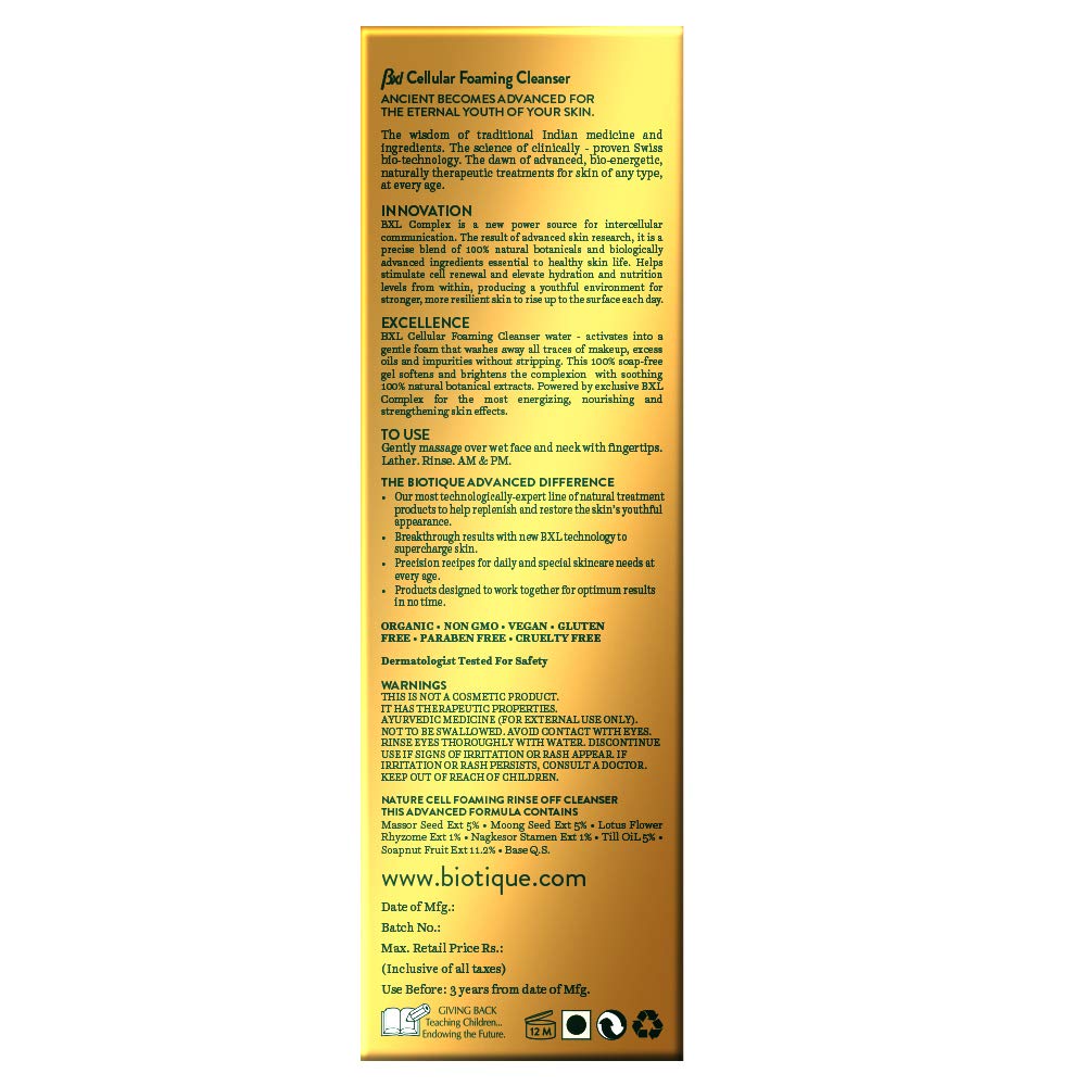 Biotique BXL Cellular Clean Bio Honey Gel Foaming Cleanser 190 ml