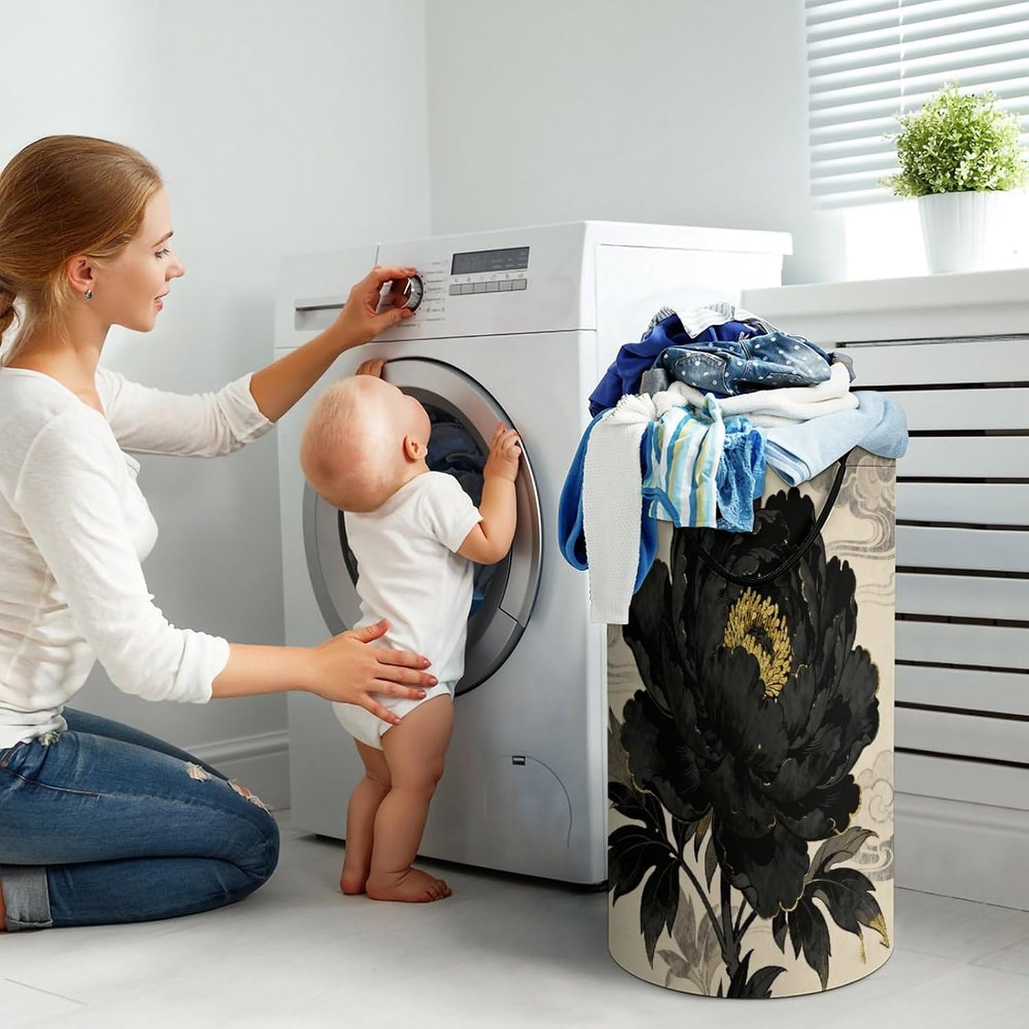 Elevate your home organization with this Waterproof Black Peony Laundry Hamper,expertly crafted from grade polyester.The Foldable Laundry Hamper features dual comfort-grip handles for smooth transport from bedroom to laundry room,and its freestanding structure requires no additional support-ideal for narrow corners or tight spaces.Designed as a Clothes Organizer Basket,it maintains its shape even when fully loaded,providing dependable storage.This versatile Clothes Hamper for Bedroom Storage effortlessly transitions between roles: organize dirty laundry,stash seasonal garments,or corral household miscellany.Its generous capacity accommodates bulky towels,bedding,or multiple outfits,streamlining your routine.As a Freestanding Tall Clothes Hamper,it maximizes vertical space in closets,bathrooms,or under shelves.The Narrow Laundry Bag design fits snugly against walls,making it perfect for apartments,RVs,or dorm rooms.Embrace hassle-free tidying with this Funny Black Peony Laundry Hamper,which folds into a compact cylinder for travel or seasonal storage.Lightweight and portable,it’s ideal for quick clean-ups,gym visits,or trips.The vibrant heat-transfer prints add personality to any space,turning a mundane chore into a cheerful ritual.Whether used for weekly washes or as a playful Room Decor Laundry Hamper,it blends practicality with aesthetic charm.