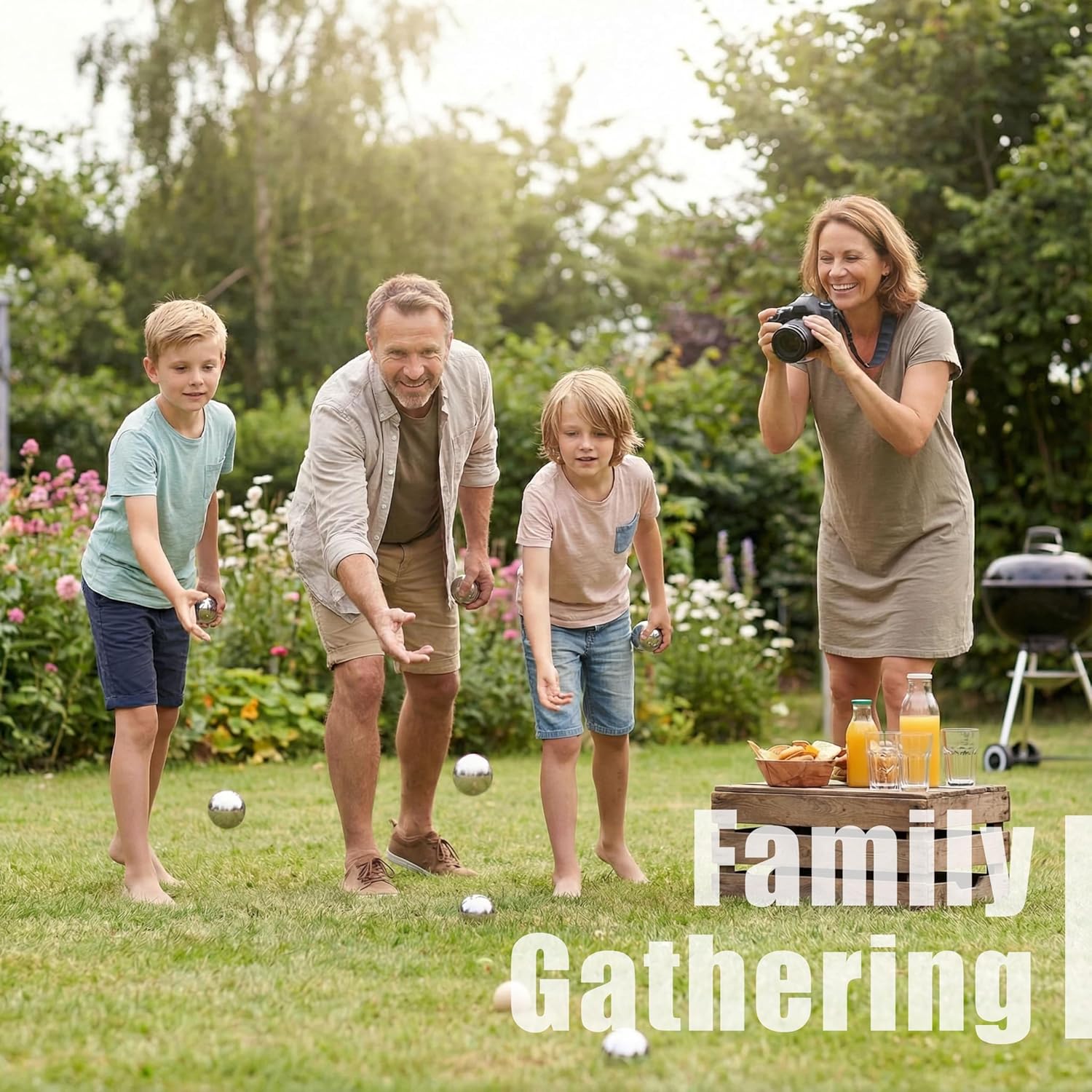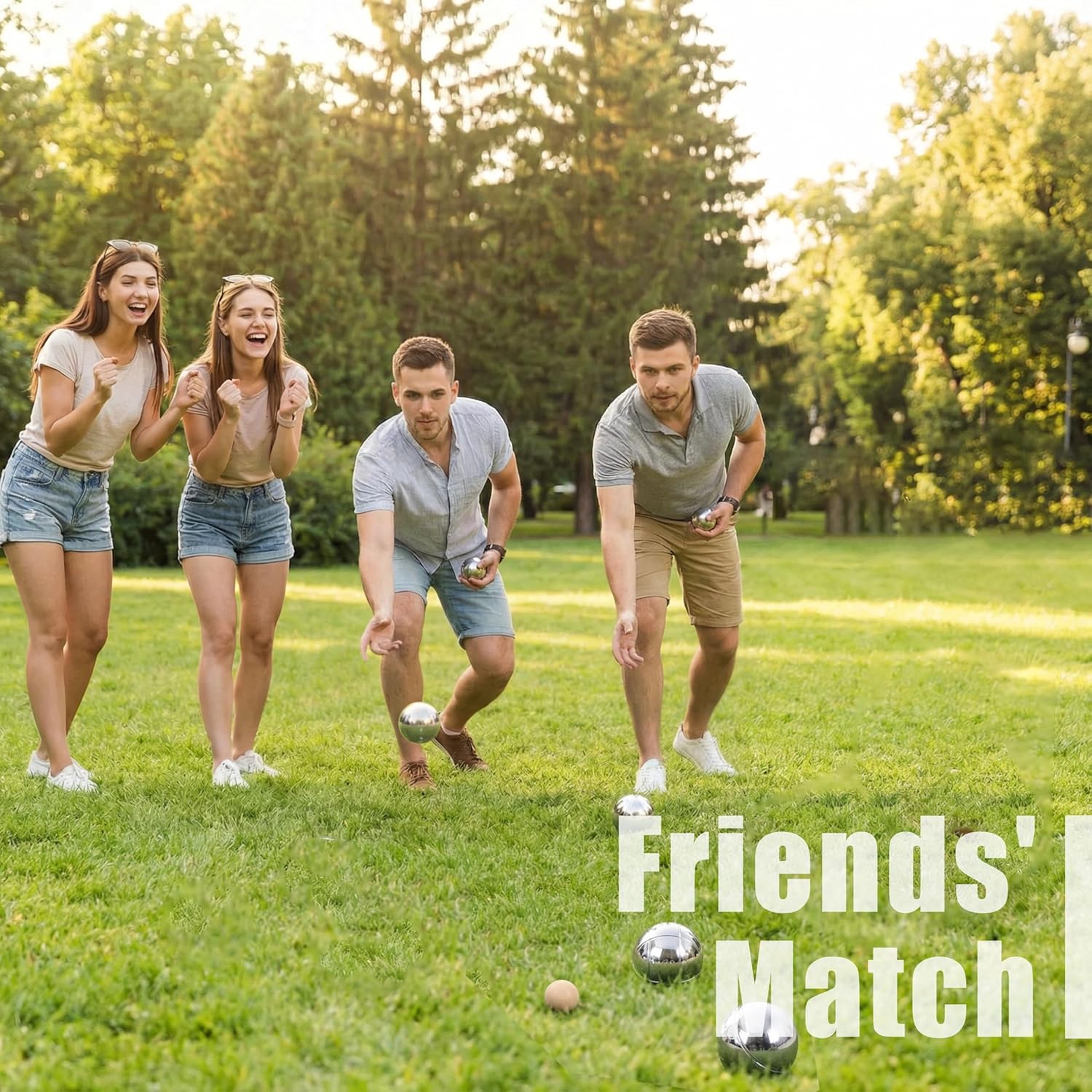 STARZEY Official Bocce Sets Petanque Game Set – Your Go-To Outdoor Game for Family Fun & Friendly Competition Bring endless entertainment to your outdoor moments with our premium complete boules set. Whether you're planning a backyard barbecue, beach vacation, family camping trip, park picnic, or friend gathering, this classic bocce game delivers the perfect blend of strategy, relaxation, and interactive fun for kids, teens, adults, and the whole family. What You Get in This Complete Set - 6 x Premium Rust-Resistant Metal Bocce Balls (3 distinct stripe patterns for easy team differentiation) - 1 x Solid Wooden Jack Ball (target ball for precise play) - 1 x Precision Measuring Tool (for accurate scoring and fair play) - 1 x Thickened Tear-Resistant Nylon Carrying Bag (for easy storage and transport) Official Standard Size for Authentic Play Each bocce ball measures 7.3cm in diameter and weighs 1.5 lbs (700g), fully compliant with official boccia game size and weight standards. The smooth, balanced metal surface offers a comfortable grip and consistent, precise throws, ideal for both casual family play and friendly competitive matches. Durable Build for All Outdoor Environments Crafted with high-quality anti-rust metal and sturdy accessories, our petanque set is built to withstand long-term use on multiple surfaces – lawn, sand, gravel, concrete, and more. It resists wear, deformation, and weather damage, making it a long-lasting addition to your outdoor game collection. Portable & Travel-Friendly Design The heavy-duty nylon storage bag keeps all components neatly organized and protected during transport. Its compact, lightweight structure allows you to take the game anywhere, from beach trips and camping adventures to tailgates and park outings, no bulky equipment needed. Perfect for family bonding, friend gatherings, outdoor parties, and casual competitive play – create lasting fun memories with the STARZEY bocce ball set.