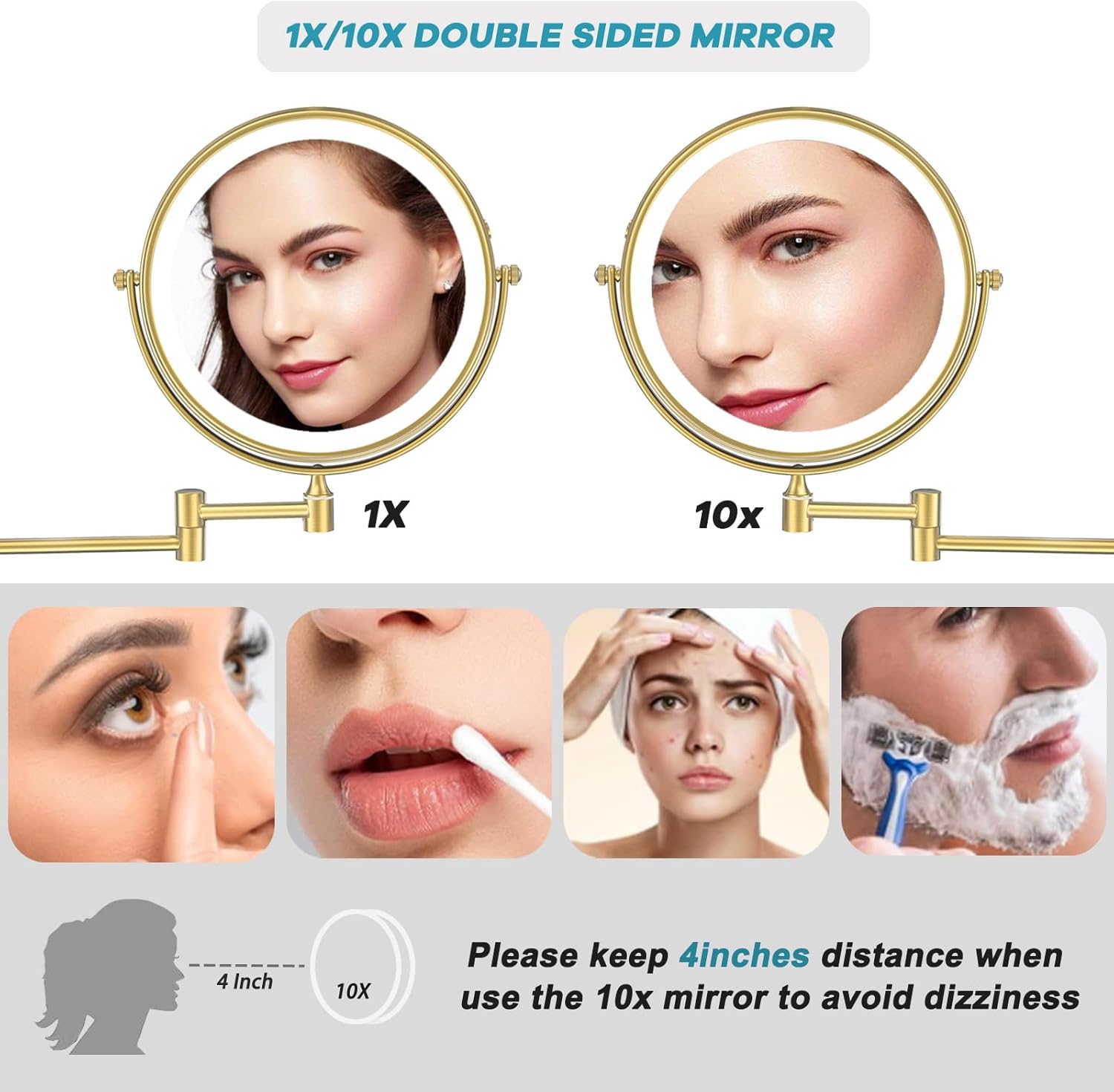 | Additional Features | Double sided 10x makeup mirror with light, Extended Arm 360 Rotation Shaving Light up Mirror, Light up led vanity magnifying, Rechargeable Wall Mounted Lighted Makeup Vanity Mirror, Round magnifying mirror with light |