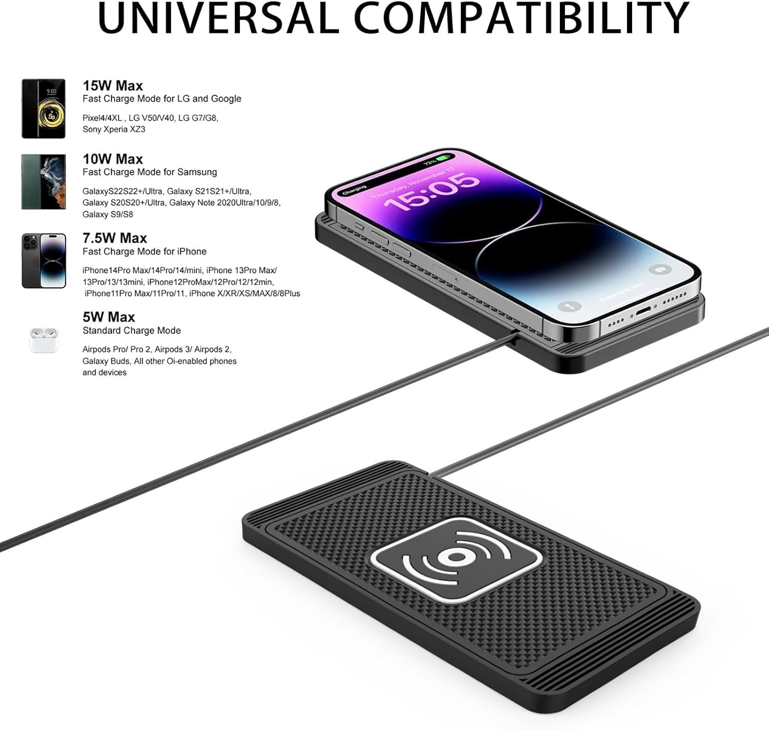 ⭐⭐Keep your phone and small accessories organized while charging inside your vehicle with this practical car dashboard charging pad. A simple interior accessory that helps keep your vehicle space cleaner and more organized.🔹【Product Specifications】◉Product Name: Car Dashboard Charging Pad for Acura RDX Advance 2019–2025◉Compatibility: Compatible with most cars, trucks, SUVs, and other vehicles◉Installation Location: Dashboard / Center Console / Storage Tray◉Surface Type: Textured Anti-Slip Grip Surface◉Cuttable: Yes, can be trimmed to fit different dashboard layouts◉Package Includes: 1 × Car Dashboard Charging Pad⭕【Product Features】▣Car dashboard charging pad designed to hold smartphones securely while connected to a charging cable inside the vehicle.▣Flexible cut-to-fit design allows trimming the mat to match different dashboard layouts or center console compartments.▣Works as both a phone charging placement pad and a small item organizer for keys, coins, cards, and glasses.▣Compatible with most vehicle dashboards, center consoles, and storage trays in cars, trucks, and SUVs.▣Helps keep the vehicle interior organized by creating a designated area for frequently used small items.▣Simple placement installation with no tools required, making it easy to position or reposition when needed.▣Practical car interior accessory for drivers who want a convenient place to keep their phone while charging.💟【Note】If you have any questions, please contact us and we will respond within 24 hours!