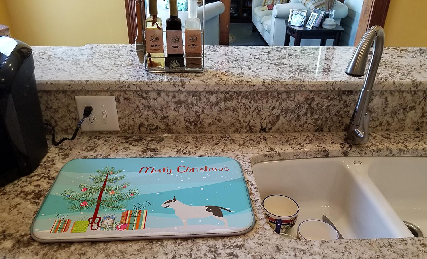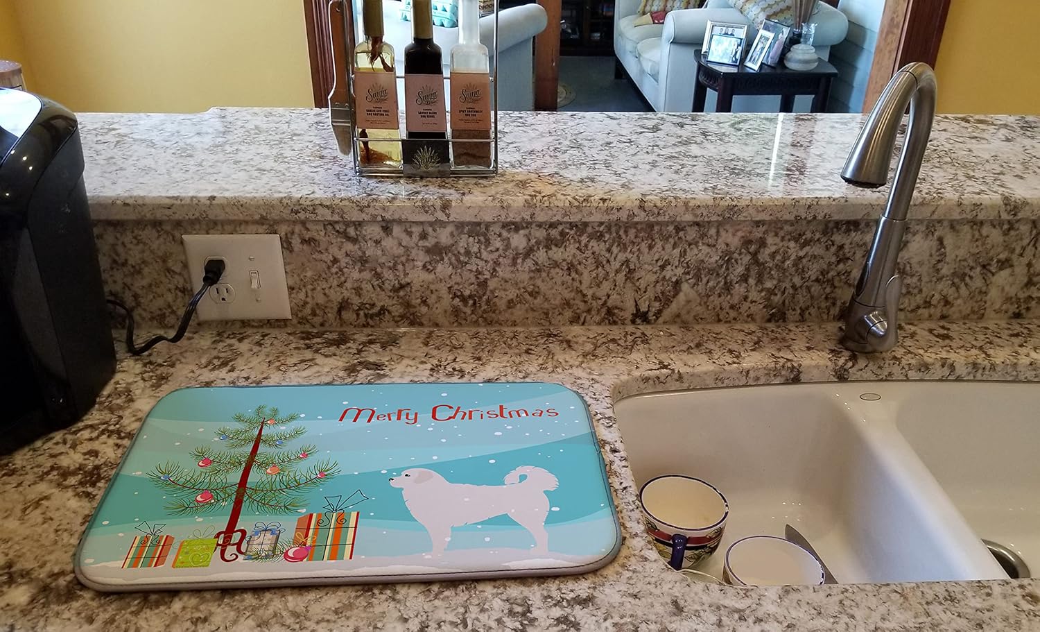 Tired of setting dishes on an old towel? Well fret no more when you set your eyes on this decorative dish mat! It measures 14 inches x 21 inches and features a water-absorbent polyester face, polyurethane foam insert, polyester mesh lining and a binding edge finish. Add a touch of flair and functionality to the kitchen by ordering yours today!