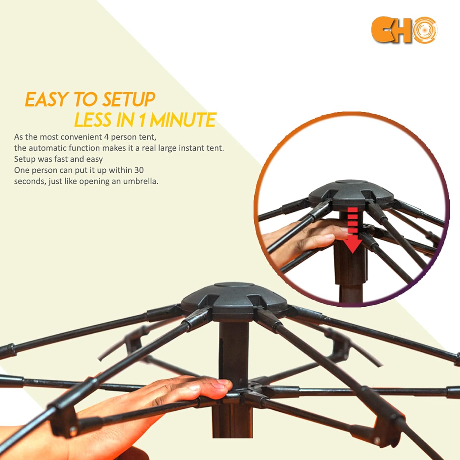 | Assembly Instructions Description | To set up the tent, lift the top of the tent, pop the top mechanism down, and then click the bottom joints into place. This process takes approximately one minute. |