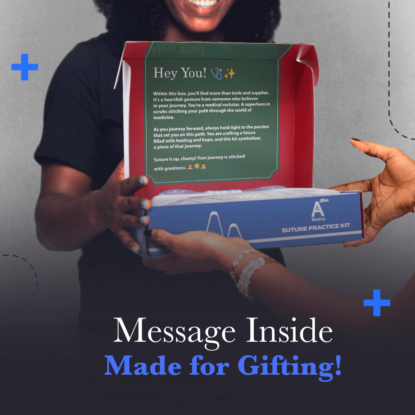 Medical students say our suture practice kit has given them real-world confidence.Unlike cheap suture training kits with flimsy tools, thin materials, or cheap instructions, our 26-piece suture practice kit gives you everything you need to gain confidence fast - including our up-close, 4K video suture training course... 4K Video CourseOur step-by-step videos give you the fastest path to learn how to suture fast so you can gain confidence and develop a steady hand. You'll go close-up with an experienced professional - all in 4K detail. You'll learn how to suture with ease and precision for:Simple InterruptedMattress SuturesSimple RunningSubcuticularAnd more 3-Layer Suture Practice PadMedical students say they notice the quality at first touch. Our 3-layer design gives you the feel of skin, fat, and muscle, with a mesh reinforced design that stands up to multiple uses. Our Solid bottom base design with the six rubber feet keeps your suturing pad in place while suturing for realistic hassle-free training experience without slipping or sliding. Various Types of Threads, Solid Instruments, and a Carryall CaseGet the extra edge by getting various types of threads to familiarize yourself with different suture materials! Your suture practice kit comes packed with 16 threads of various types. Medical students say our tools feel good in the hand. Best of all, everything packs into the carryall case - even the suture pad - so you can take your suture practice kit anywhere easily with you! But don’t take our word for it… Open your suture practice kit, feel the suture practice pad texture, the weight of the tools, and watch the 4K Videos for yourself.