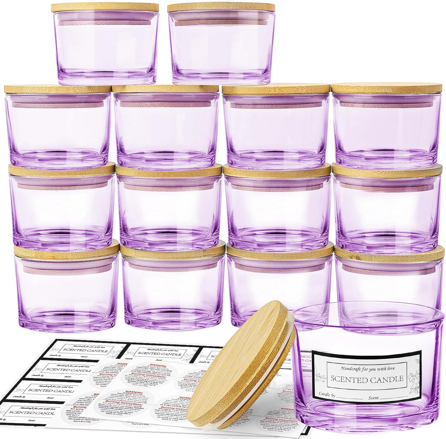 | Included Components | 15 Pcs wide mouth 4oz empty orange candle jars with bamboo lids, 16 Candle warning labels, 16 Scented Candle sticker labels |