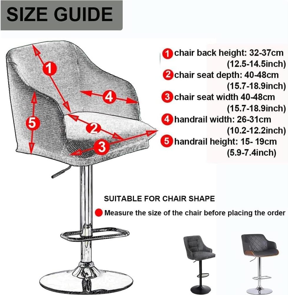 Chair cover features:1. Soft fabric, high durability polyester spandex fabric, durable and breathable.2. Anti-slip design, sewed elastic, easy to install, close to the chair, easy to fit, fixed in place.3. Precise lining, experienced technicians strictly check every stitch to make sure every thumb is still.4. Easy to wash, the seat cover is made of durable fabric, the seat cover can be washed hundreds of times without wrinkles.Recommended size of chair.1. Back Height: 12.5-14.5 inches (32-37 cm);2. Seat length: 15.7-18.9 inches (40-48 cm);3. Seat width: 15.7-18.9 inches (40-48 cm).Packing List:Chair Cover X 2/4/6 (Optional)Note.1. There is a 2-3cm difference after manual measurement.2. Please check the size chart carefully before purchasing.3. Please note that slight color difference is acceptable due to light and screen.