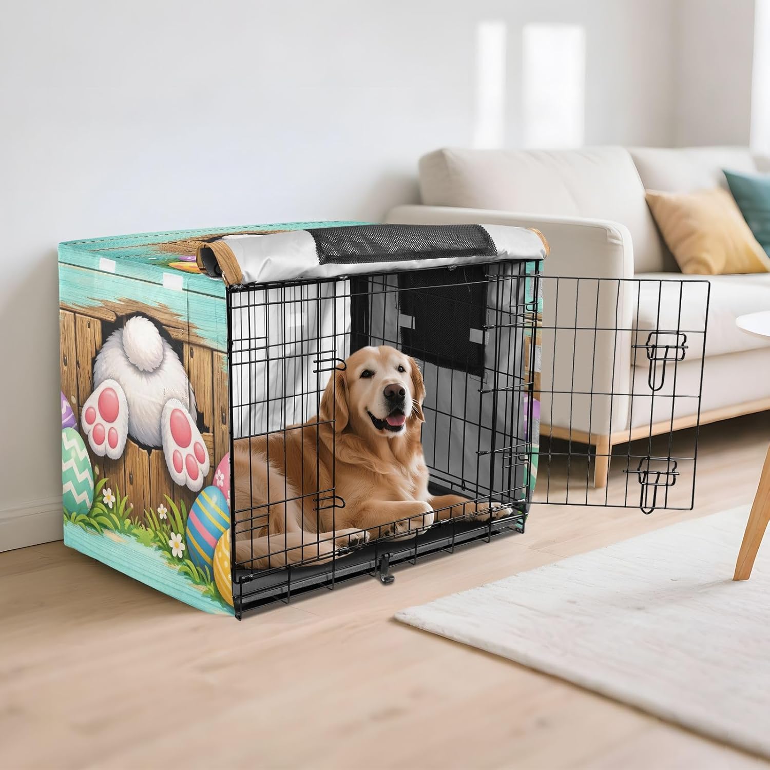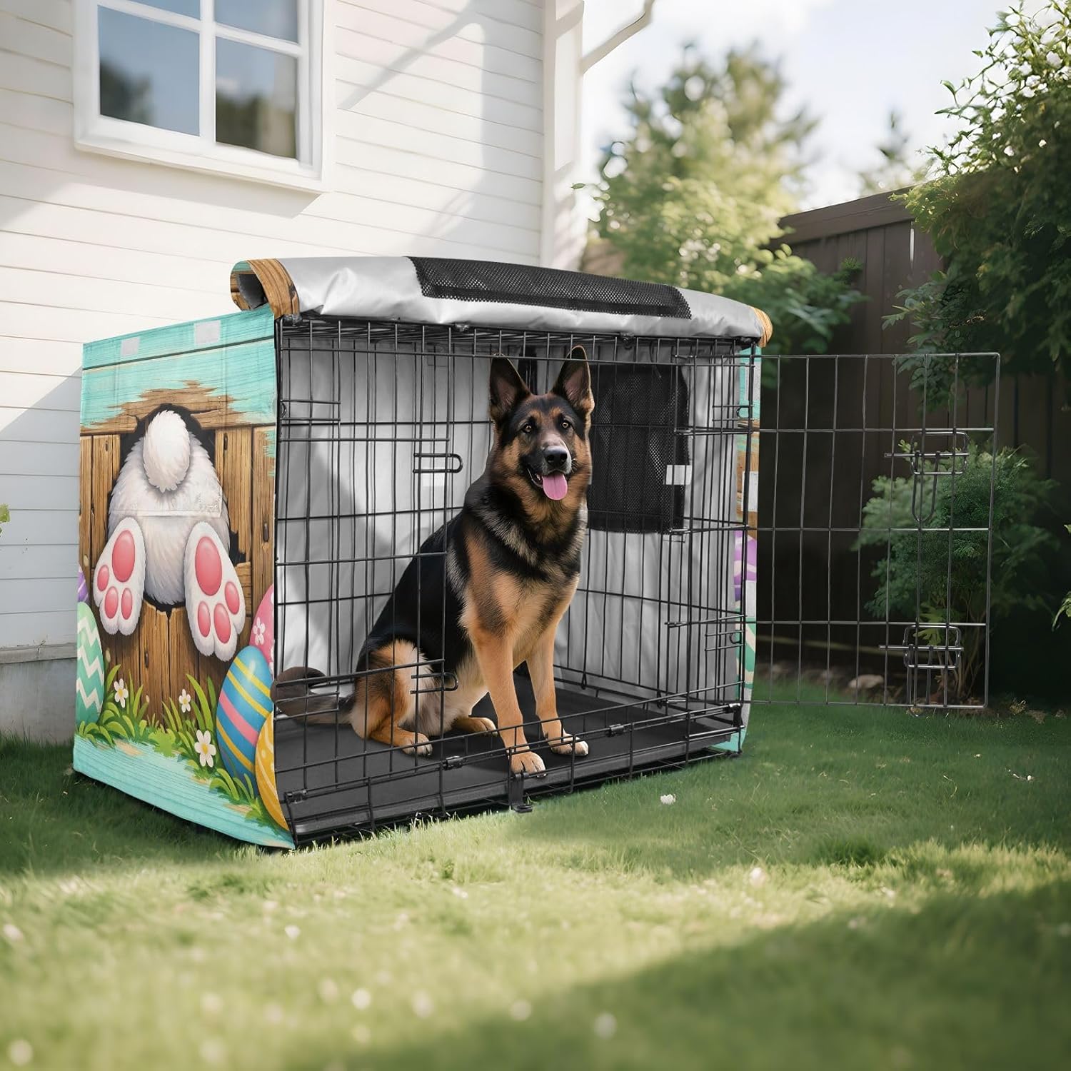 Premium Protection – Constructed from 600D silver-coated oxford fabric, this travel dog crate cover offers excellent protection from rain, wind, and sunlight. It helps prevent scratching and keeps your pet’s crate protected from external elements.Quick Setup – This travel crate cover is designed for easy installation, with a simple fastening system that ensures a secure fit without the need for tools or extra help.Mesh Windows for Comfort – This cage cover includes mesh windows on all sides, promoting airflow to keep your dog cool and comfortable while providing privacy and a sense of security inside the crate.Secure and Stable – With four tie-down straps at the bottom, this travel pet crate cover remains securely in place, even during windy conditions. This feature ensures that your dog’s crate is stable and protected from the elements.Flexible Usage – This dog kennel cover is suitable for both indoor and outdoor use, making it a Suitable solution for protecting your pet's crate whether at home, during travel, or on outdoor adventures.