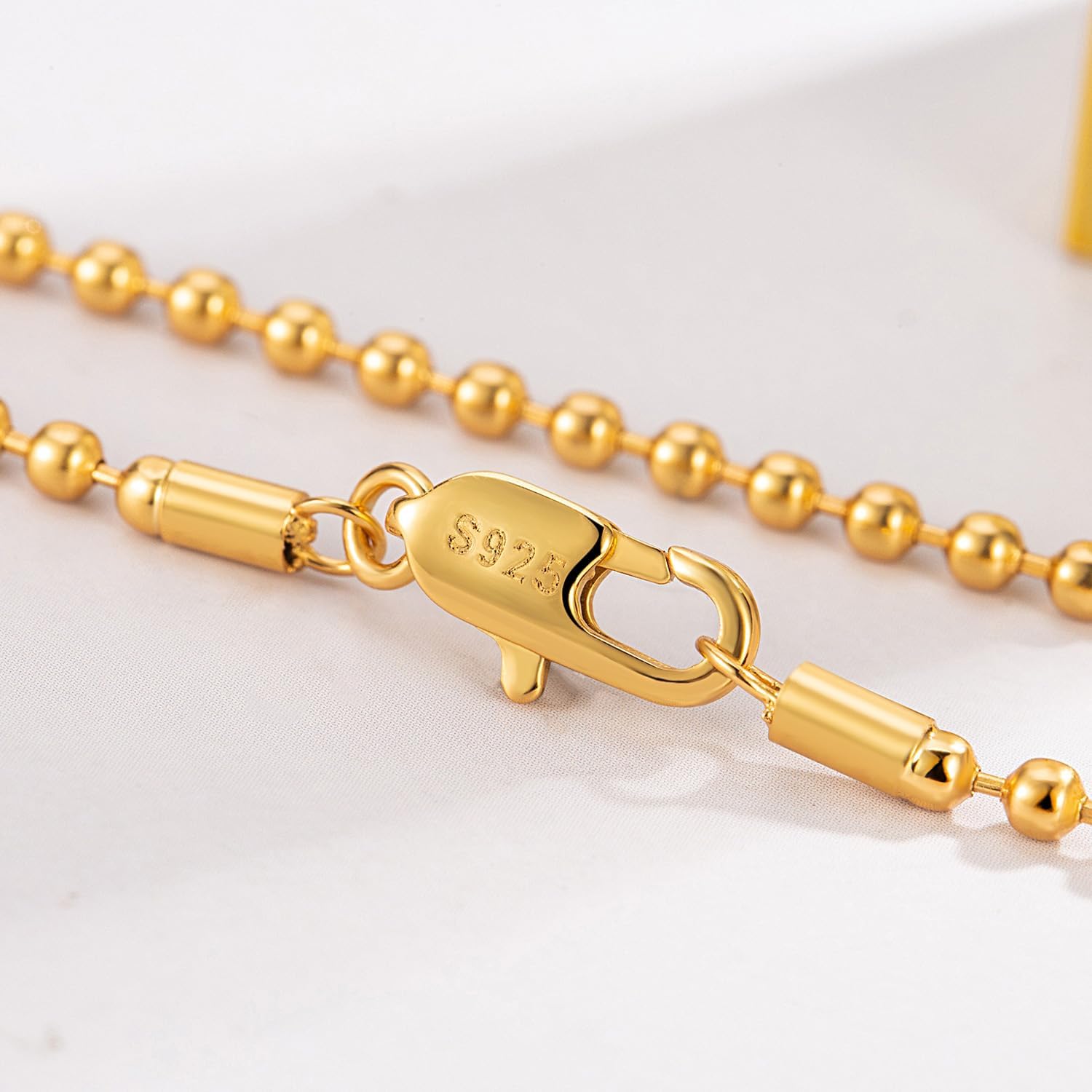 Add a touch of timeless elegance to your jewelry collection with this stunning sterling silver ball chain necklace. Featuring perfectly uniform 2.3mm beads crafted from genuine sterling silver, this classic chain offers a versatile look that pairs beautifully with any pendant or stands alone as a sophisticated statement piece. The secure lobster clasp ensures your necklace stays in place while being easy to fasten and remove. The highly polished silver beads catch and reflect light beautifully, creating a subtle sparkle with every movement. This necklace is an essential addition to any jewelry box, suitable for both everyday wear and special occasions. The durable construction and quality materials mean this piece will maintain its lustrous appearance for years to come. The traditional ball chain design provides a perfect balance of classic style and modern appeal, making it an ideal choice for layering with other necklaces or wearing as a signature piece.