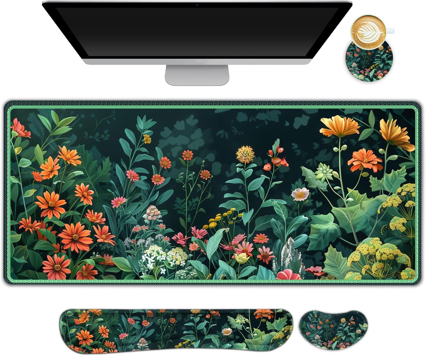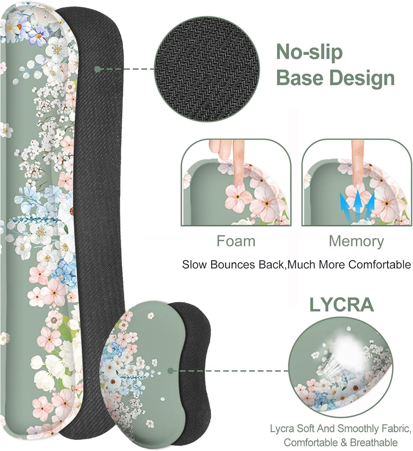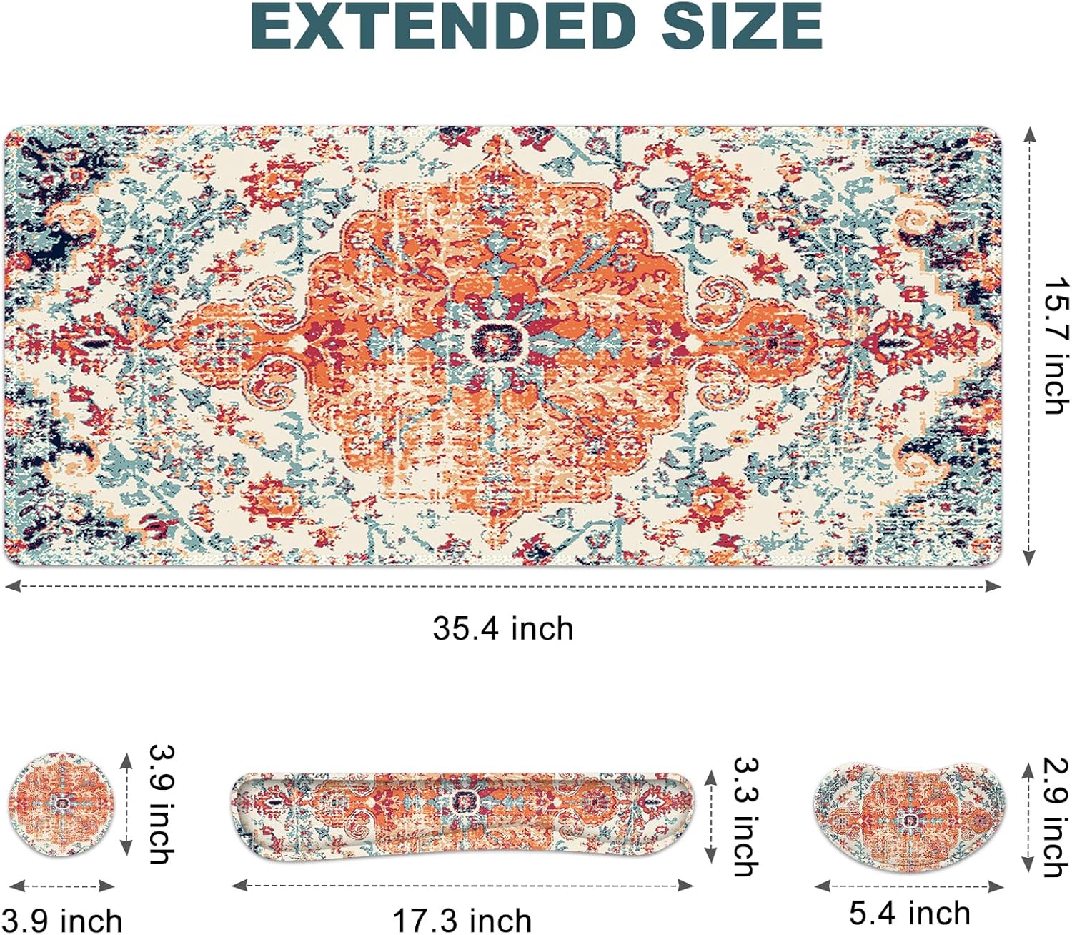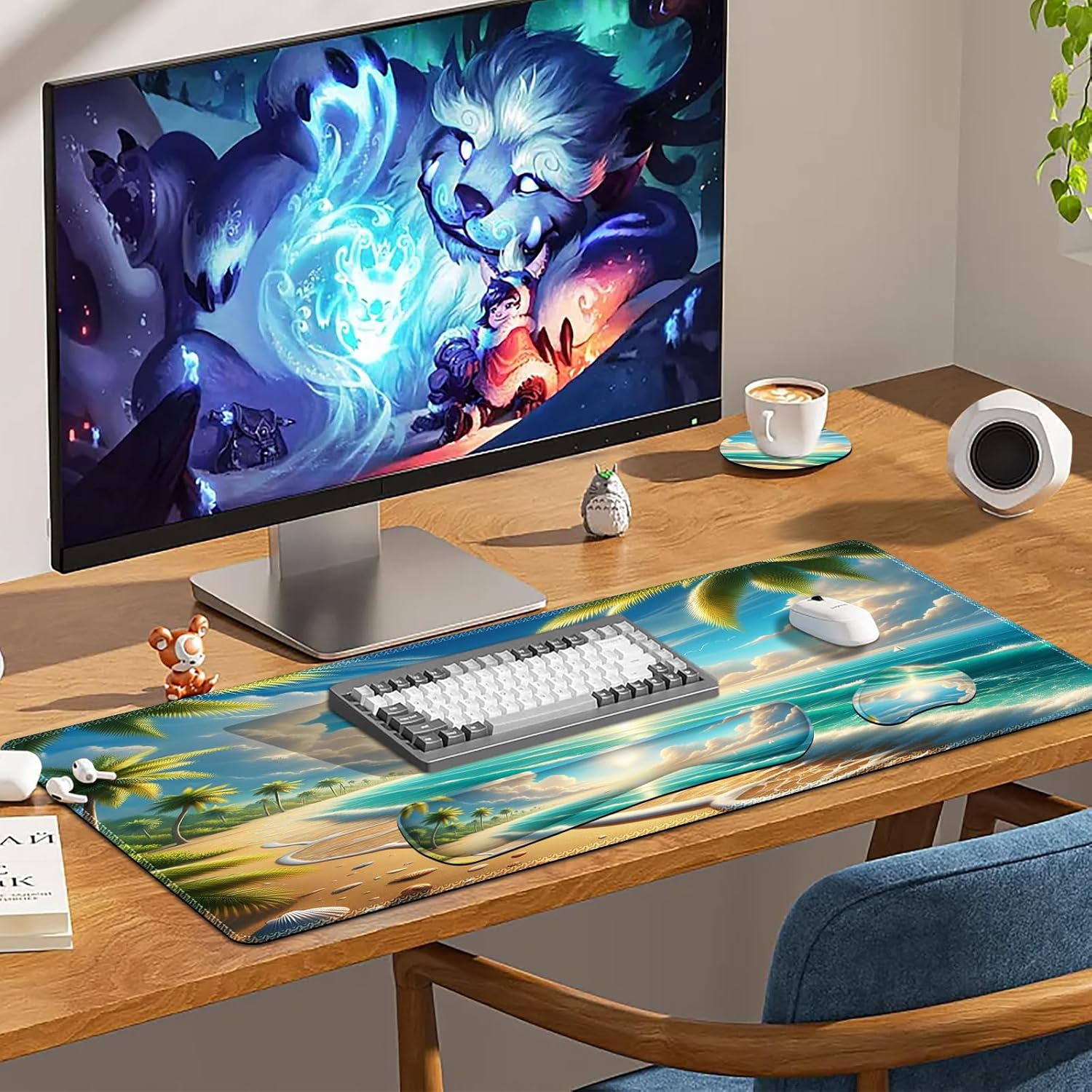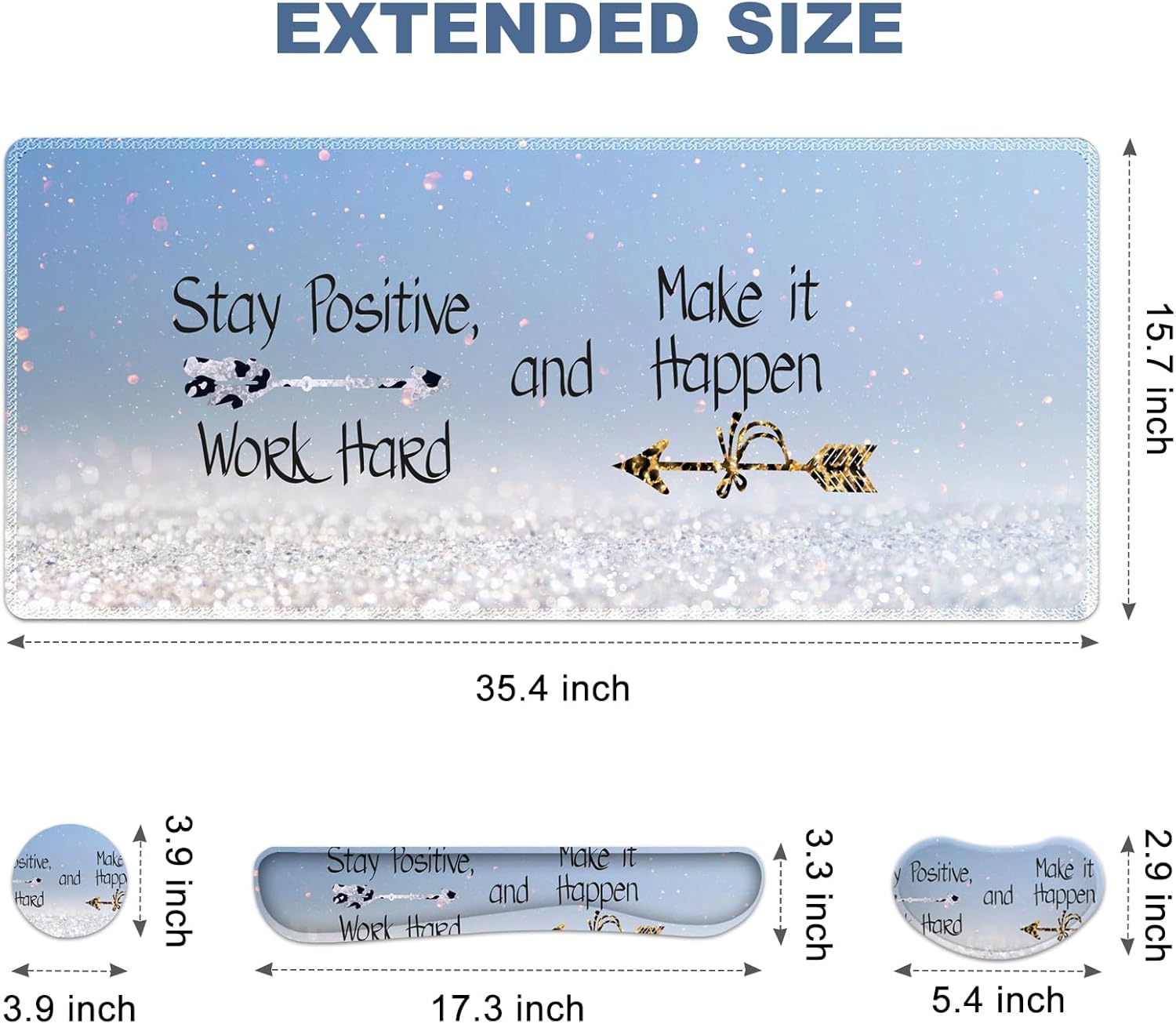 The main purpose of the Lauspuck mouse pad set is to provide relief from stress disorders, such as carpal tunnel syndrome, that can be caused by excessive use of the mouse or any other device that requires extensive wrist movement. The set helps to keep your wrists in a neutral position,supporting them even when not actively using the mouse or keyboard.If you experience wrist soreness or redness after using a computer for a long time, our mouse pad with wrist rest is designed to provide the comfort and support you need. The bottom surface of the pad is designed to stay securely in place on your desk, preventing any sliding during use. The memory foam padding allows your hands and wrists to sink in comfortably, enabling you to work or play computer games for extended periods without discomfort.The fatigue-free typing design of the wrist rest reduces strain on your wrist, helping to prevent joint and wrist issues. Specifications:Wrist Filling Material: Memory formPackage Included:1x desk pad (35.4x15.7inch)1x keyboard wrist rest(17.3x3.3inch)1x mouse wrist rest(5.4x2.9inch)1x cup coaster(3.9x3.9inch)Ordering Lauspuck mouse wrist pads will help you say goodbye to uncomfortable and painful typing experiences. If you have any questions or concerns, please feel free to contact Lauspuck Direct, and we will do our best to satisfy your needs.