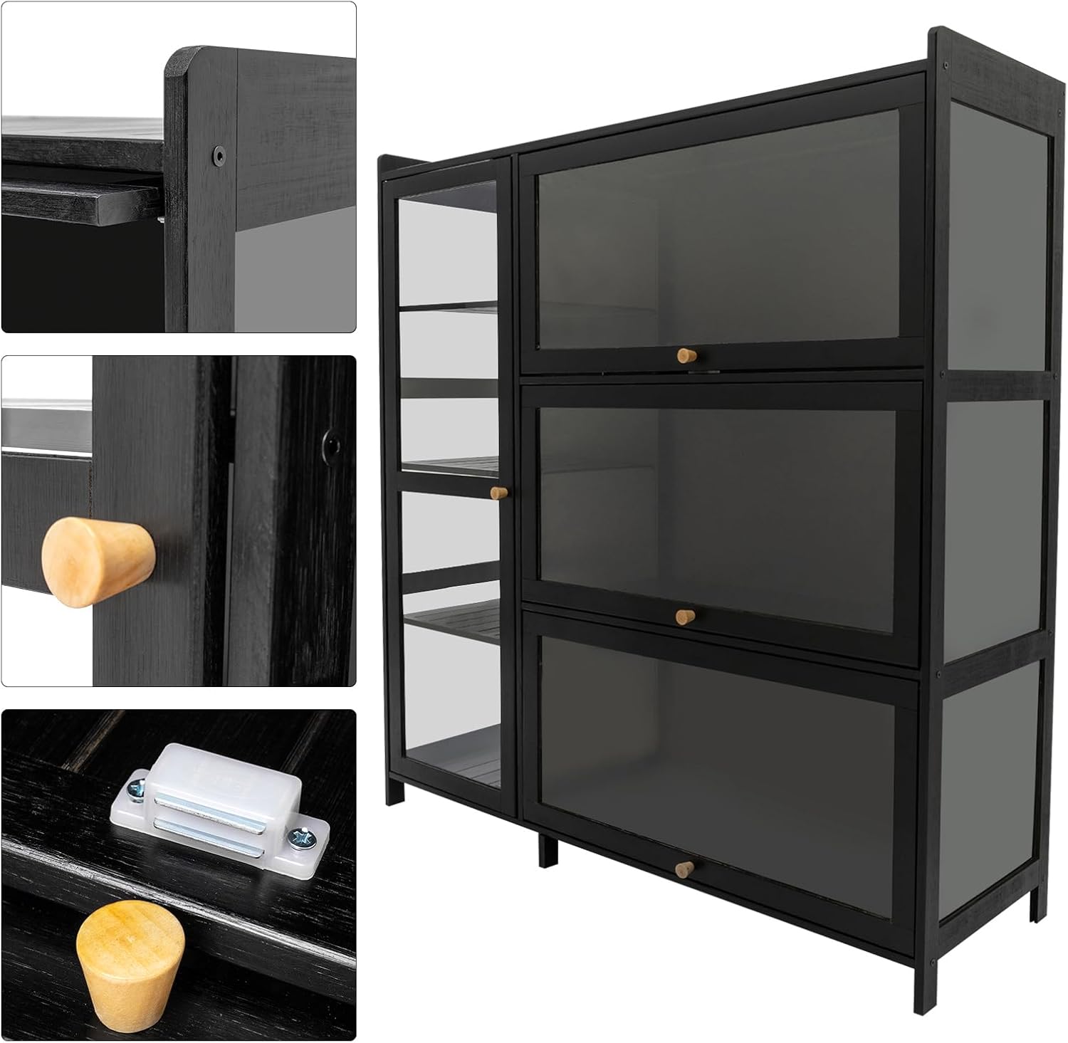 • 【STURDY CONSTRUCTION WITH 33LBS PER SHELF CAPACITY】 Built to last and hold heavy loads. Crafted from high-quality bamboo and composite board, this cabinet boasts a robust rectangular structure. Each shelf reliably supports up to 33 lbs, allowing you to confidently store books, dinnerware, or even heavy collectibles without worry.