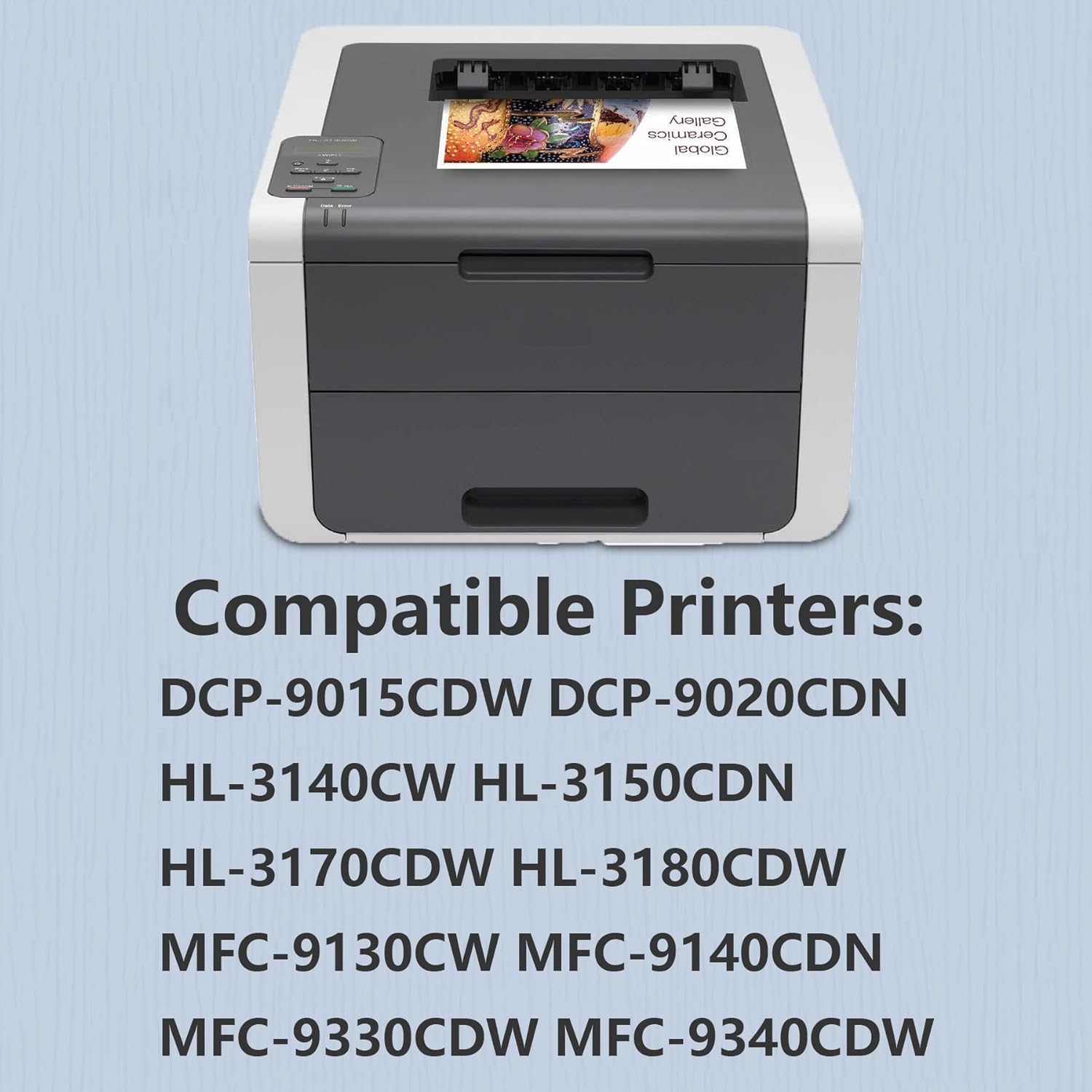 Premium quality toner cartridges perfect for your home and business printing needs. Reminder: Please double check your printer model before placing an order. Compatible Printer Models: HL-3140CW Printer HL-3150CDN Printer HL-3170CDW Printer HL-3180CDW Printer MFC-9130CW Printer MFC-9140CDN Printer MFC-9330CDW Printer MFC-9340CDW Printer DCP-9015CDW Printer DCP-9020CDN Printer Our toner cartridge imaging supplies create consistent, professional images every time. provide you with clear text and graphics, print the effect you want on paper. Sincere Service: Don't worry about toner damage to your printer. Our products are produced with high-quality materials to ensure that they are not harmful to your machine, please be sure to use them. If there are any problems or signs of damage to the item, please feel free to contact us. We will help you solve the problem.
