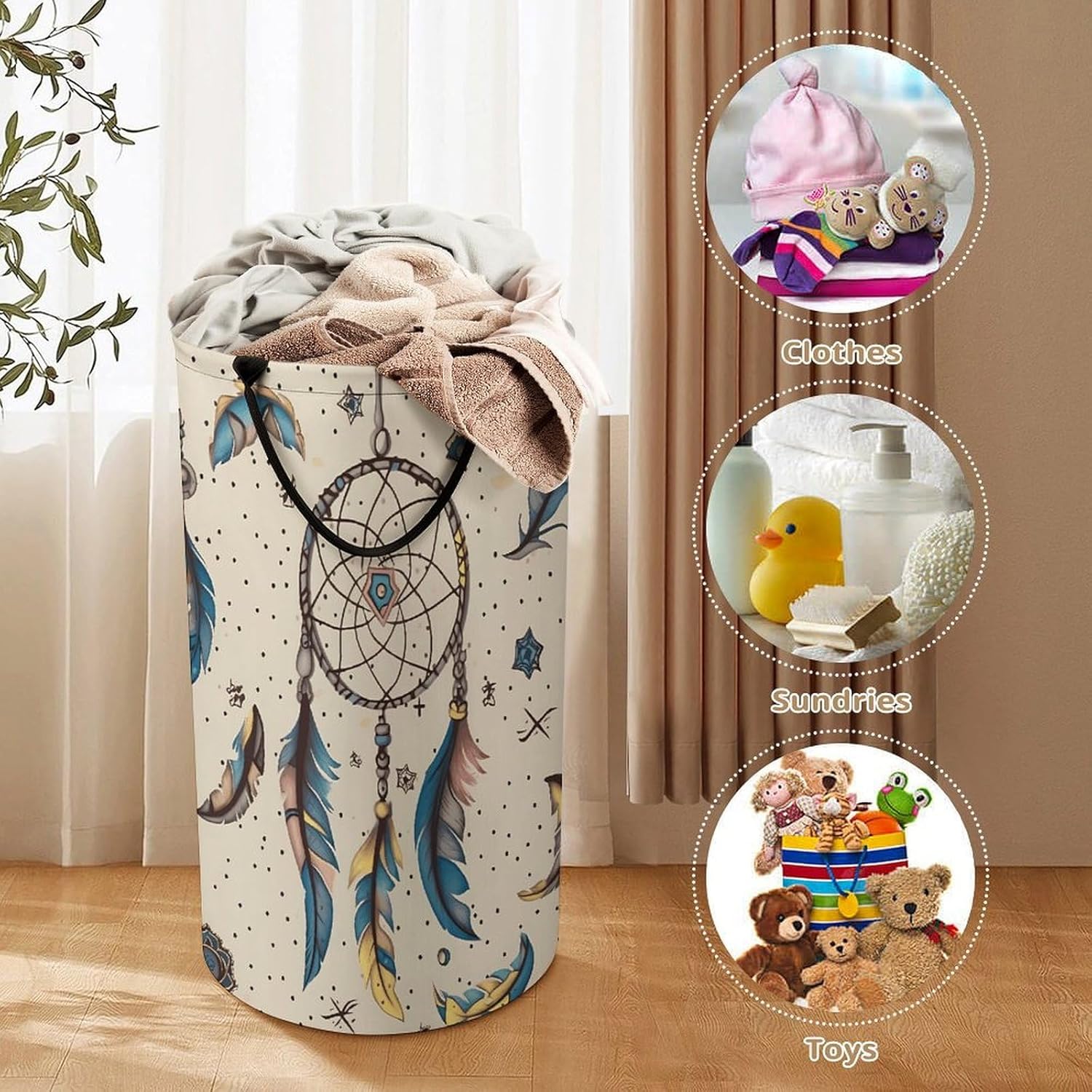 The pattern of the Dream Catcher And Moon hamper is printed with exquisite patterns, which makes the product more attractive.Chic design allows it to be used in the living room to hold throw blanket, pillows, and reading materials, as well as in the bathroom for towels, or as a laundry hamper.The laundry hamper adopted collapsible design, equipped with handles. It is lightweight and portable for using, storing, and moving conveniently.Dream Catcher And Moon Clothes hamper is suitable to store dirty clothes washing, place in the room to store toys, and other household goods, keep the house clean and tidy. Perfect laundry hamper for home, office, closet organizer, bedroom, bathroom, college dorm, etc.Gets out of your way when you need it to. This storage basket or laundry hamper is a good gift, which not only meets everyday storage needs but also carries deep care and love, a perfect way to turn thoughtfulness into warmth.