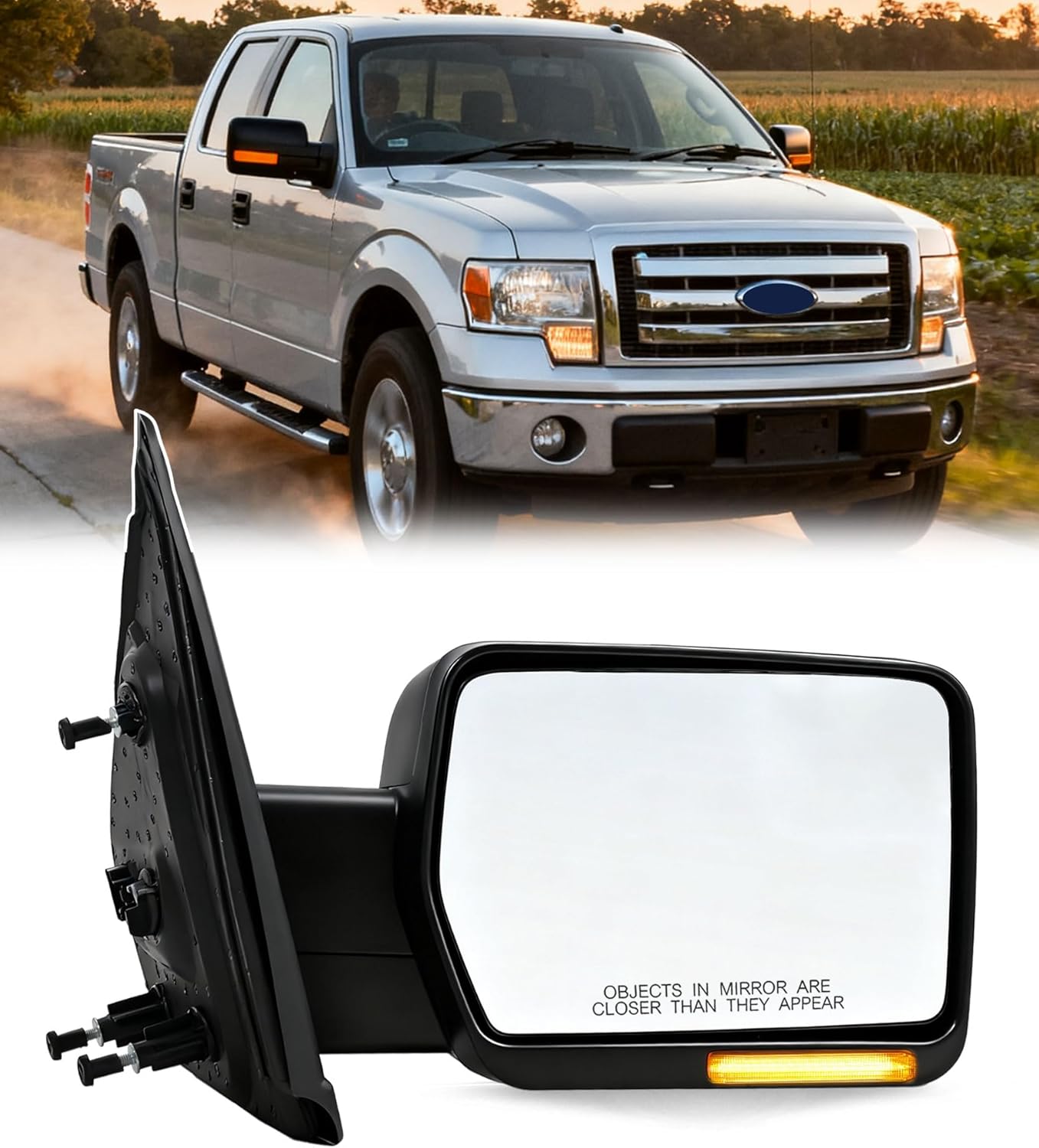 TMNIFLEG Driver Side Power Heated Mirror Compatible with Ford F-150 2011-2014, Driver Side Mirror Replacement Manual Fold With Signal Light & Spotter Glass, Textured