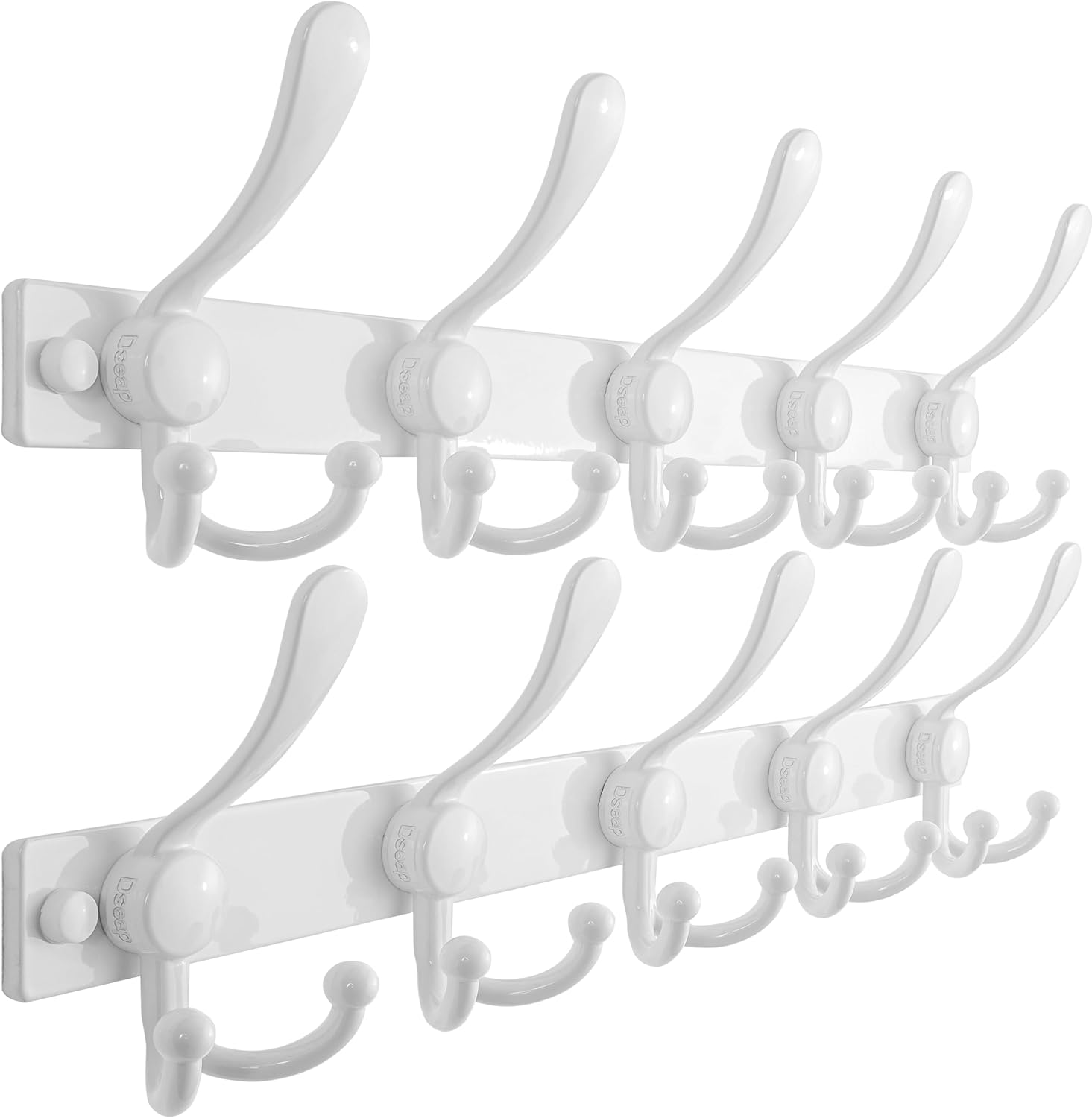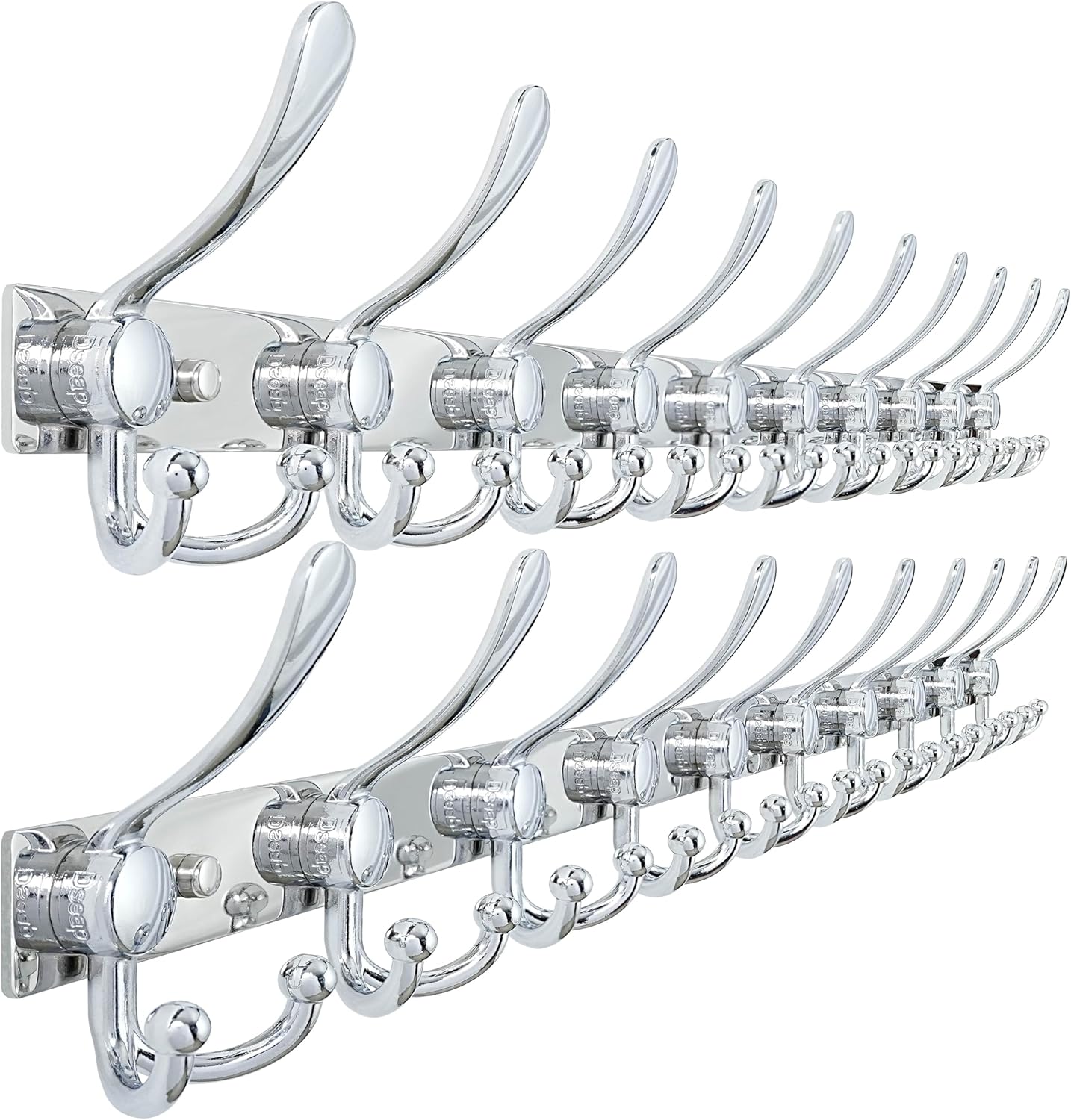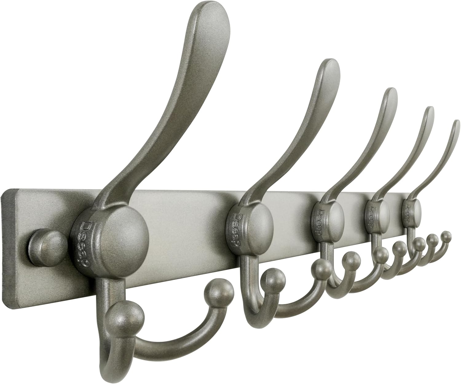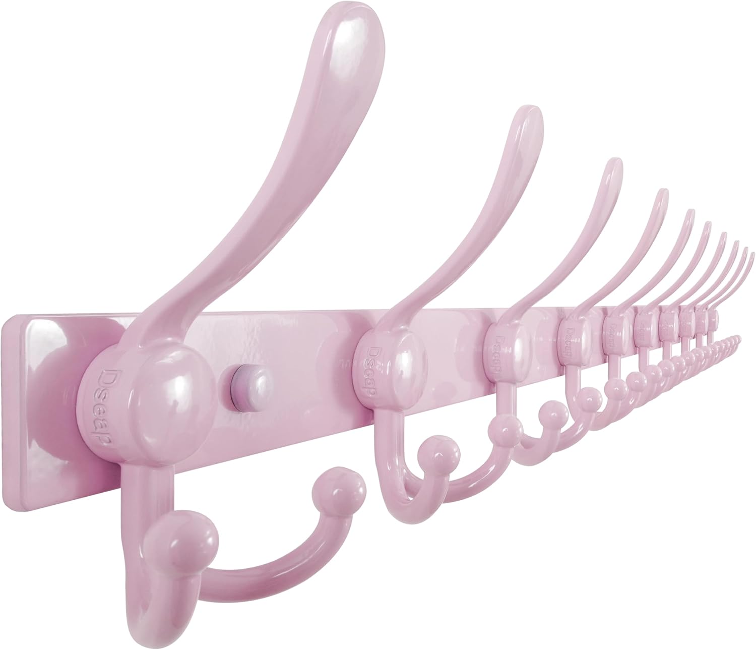 Dseap Heavy-Duty MaxStrong Coat Rack Wall Mount 2.0 with 10 Triple Hooks Material: Stainless Steel + Aluminum Alloy Dimension: 38(L) x 5-1/4(W) x 2(H) inches; Hole center distance: 16 inches Package Includes: Dseap Heavy-Duty Utility 10-Triple-Prong Wall Hook Mounting Hardwares Application Scope: Dseap triple-prong hook hanger is very utility to be as your towel holder, coat and hat rack, key hook, purse hook, scarf hanger, robe hanger, clothes hanger and others. Except its utility, Dseap coat hook is also very elegant with its modern look, great decorative hook to enhance your livingroom, bedroom, closet, bathroom, kitchen, entryway, hallway and more.